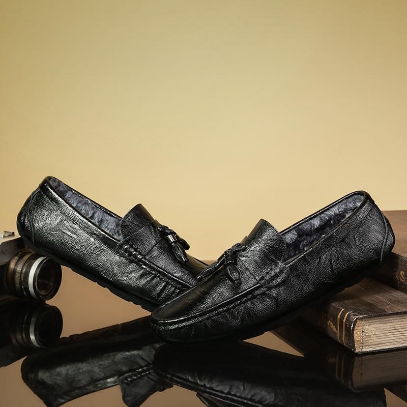 Модные мужские повседневные мокасины Теплые меховые туфли Зимние туфли на плоской подошве Повседневные мужские деловые формальные хлопковые модные туфли Итальянские туфли из мягкой кожи