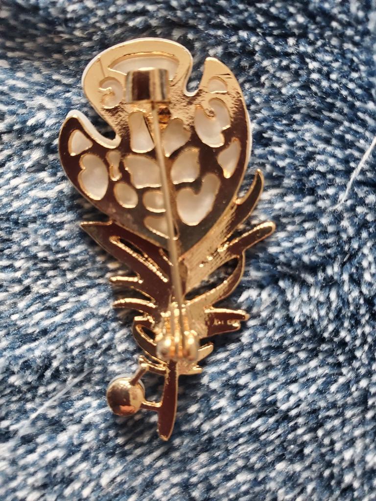 Брошь перышко. ◽Когда работаешь в офисе, хочется иногда строгий костюм разбавить каким-нибудь украшением. Это милое украшение, которое добавит в образ нотку элегантности и женственности. ◽Вообще, перо символизирует лёгкость и свободу. ◽Как же она прекрасна эта брошка! ◽Брошь выполнена в виде пера и украшена сверкающими стразами, перламутровой, акриловой вставкой и нежной жемчужиной. Сочетание страз, перламутра и жемчужины делает брошь невероятно утончённым и изысканным аксессуаром. Брошь легко крепится на одежду, сумочку, шляпку или шарф.Иголочка у застежки тоненькая, одежду не испортит. ◽Брошь легкая и изящная. ◽От души рекомендую продавца и брошку!