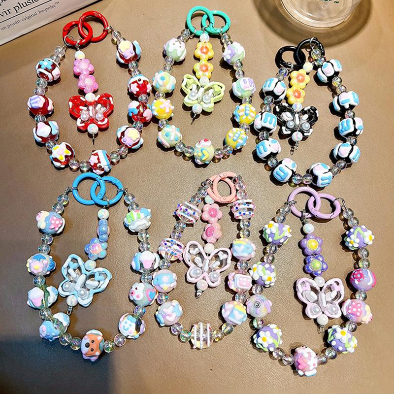 Y2K модный кулон-бабочка, телефонный шнурок, наручный браслет, стильный брелок для телефона с бисером, милый ремешок для телефона, подвеска для камеры для девочек