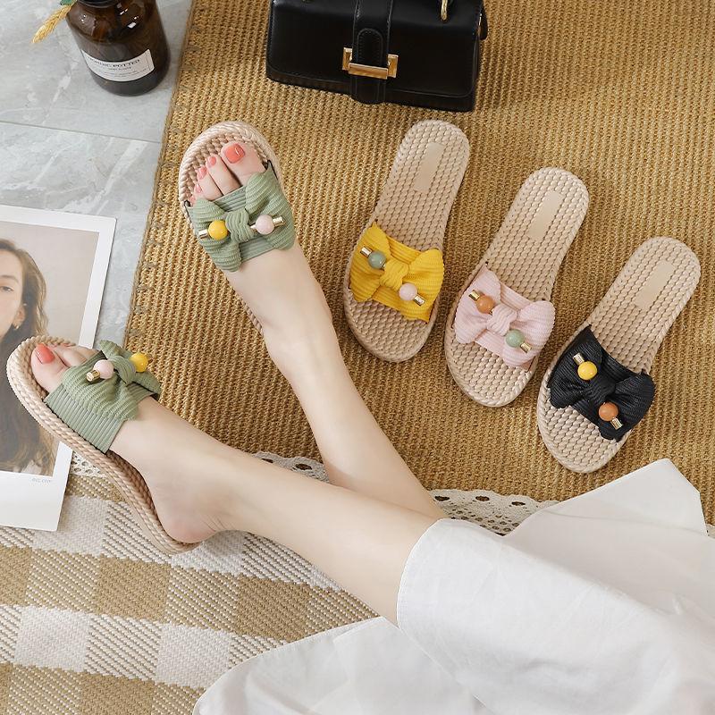 Модные женские тапочки, летние легкие тапочки в корейском стиле, интернет-знаменитости, милые дикие модные женские туфли с бантом