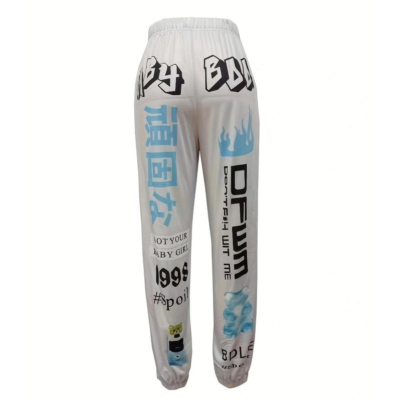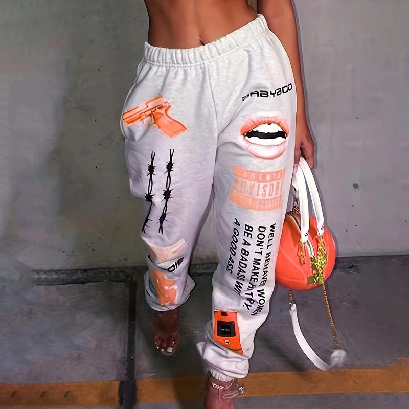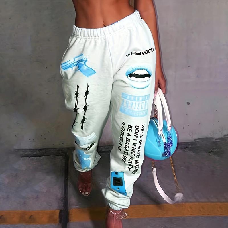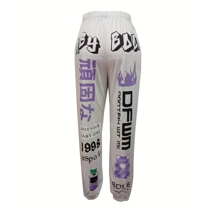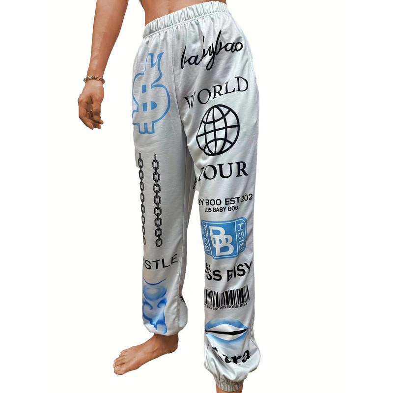 Осенне-зимние женские принтованные модные спортивные брюки с эластичной талией повседневные брюки Harlem