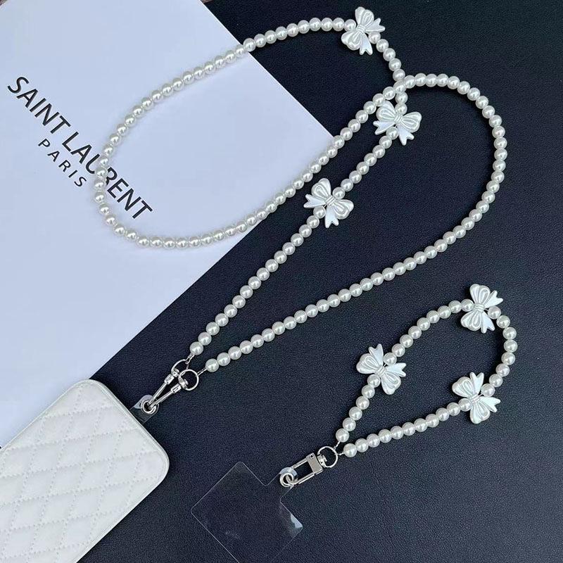 Универсальный телефонный шнурок, длинное ожерелье через плечо, цепочка, расшитая вручную пластиковым бисером, жемчужный бант, ремешок, чехол для телефона с защитой от потери, зажим для ремня