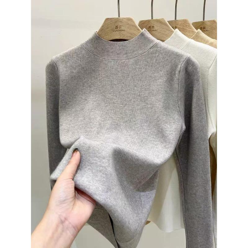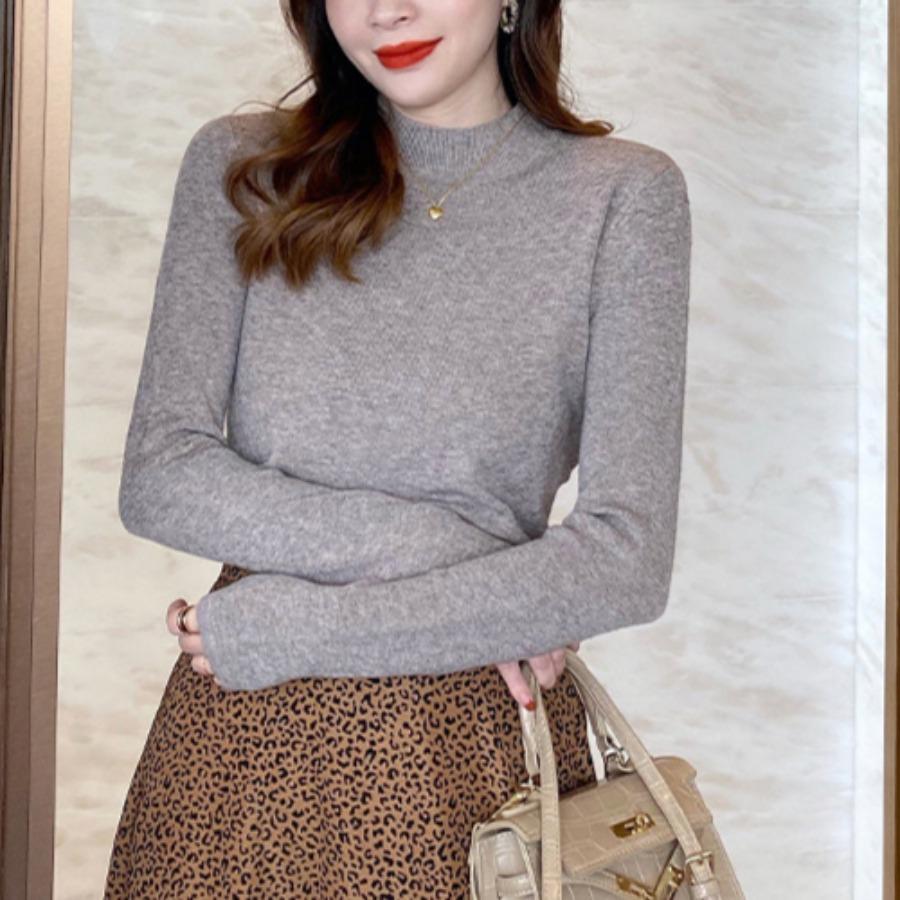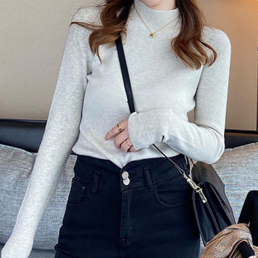 Трикотажные рубашки для женщин, осенняя рубашка с высоким воротом, универсальная, осенне-зимняя, стильная, с длинным рукавом, облегающая рубашка