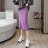 Осенне-зимняя трикотажная юбка средней длины для женщин с толстыми вогнутыми полосками Прямая юбка, облегающая ногу Юбка с разрезом средней длины