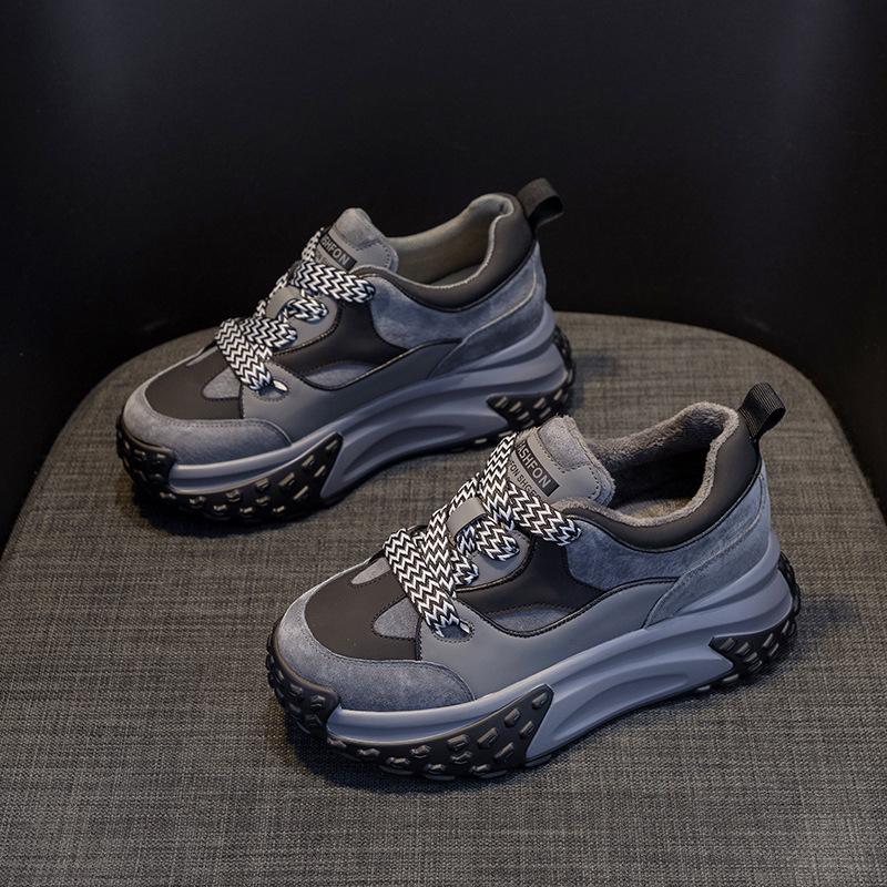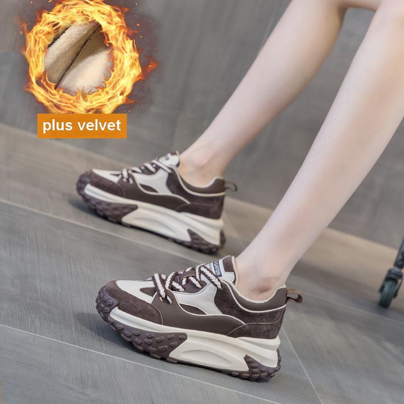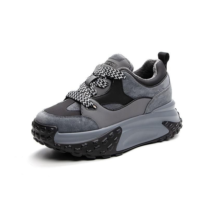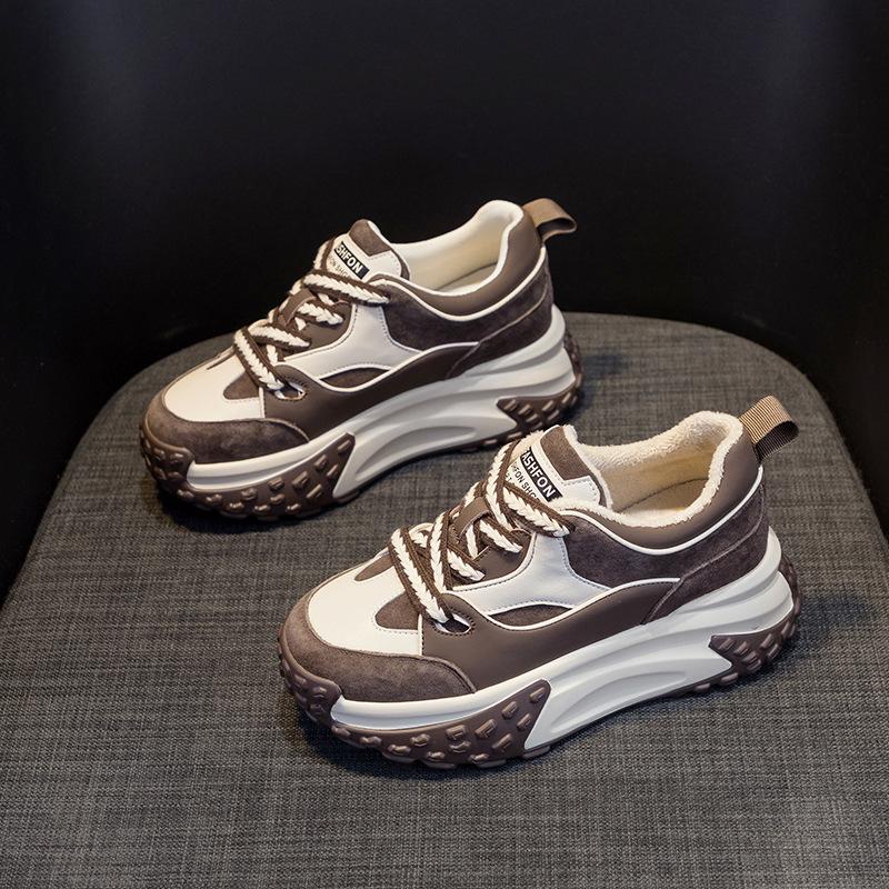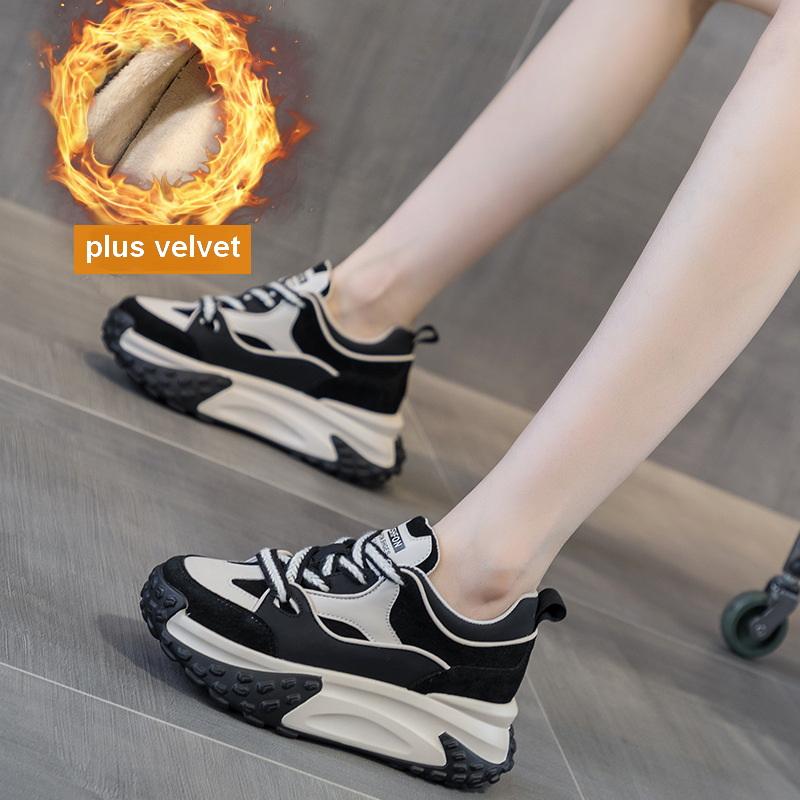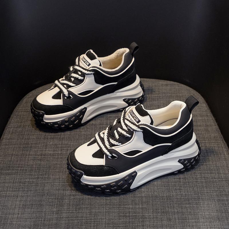 Осень и зима Новые маленькие белые туфли, спортивная кожаная обувь для отдыха для женщин, толстая подошва с повышенной внутренней высотой кроссовок
