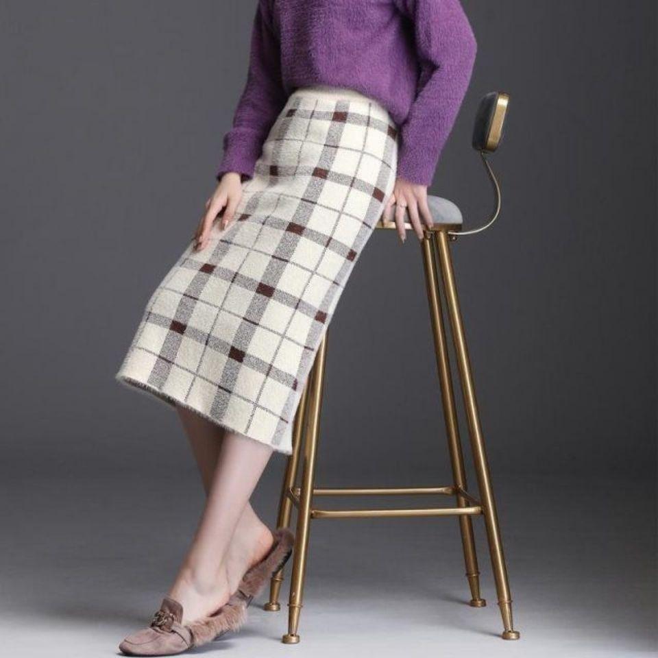 Юбка-полудлиненная из плотного трикотажа из водонепроницаемого норкового флиса, осенне-зимний комплект, юбка до бедра
