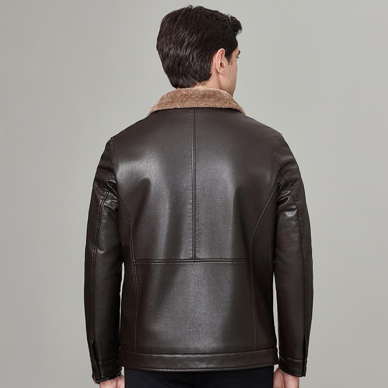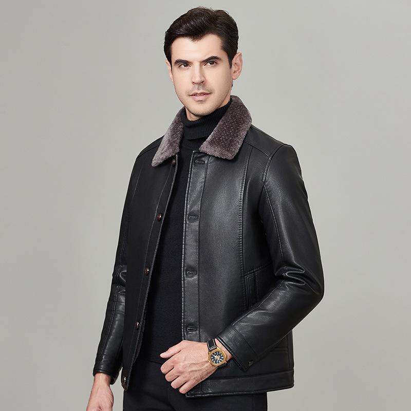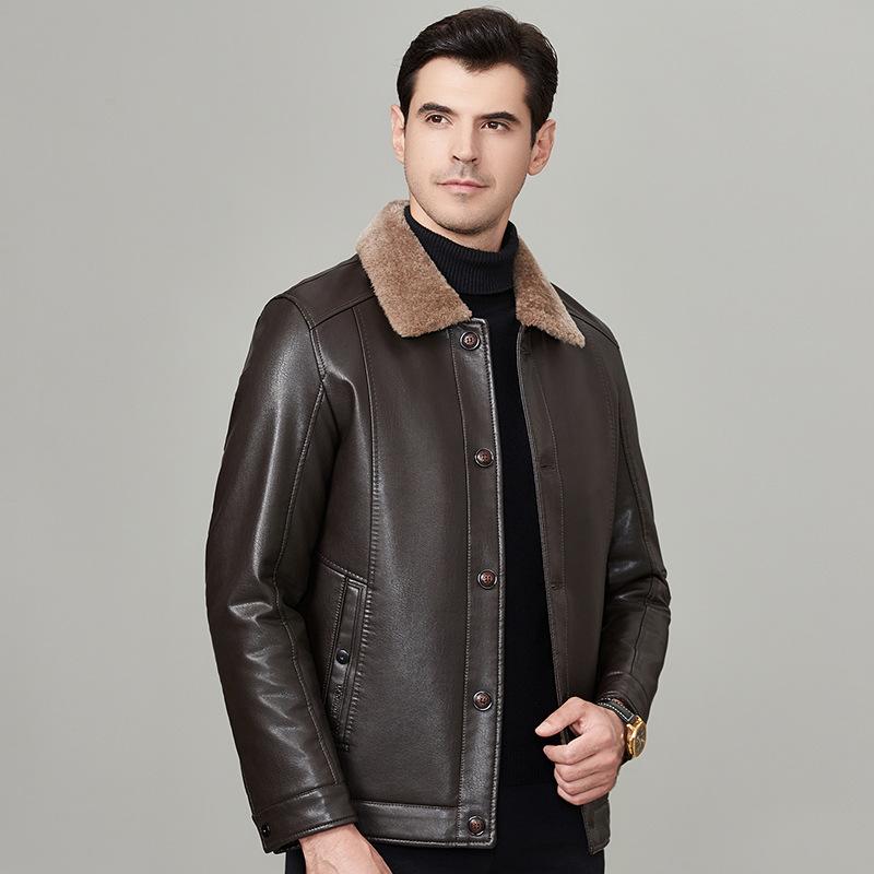 Мужская зимняя куртка из натуральной кожи с мехом овчины, цельнокроеная, утолщенная, для папы среднего возраста