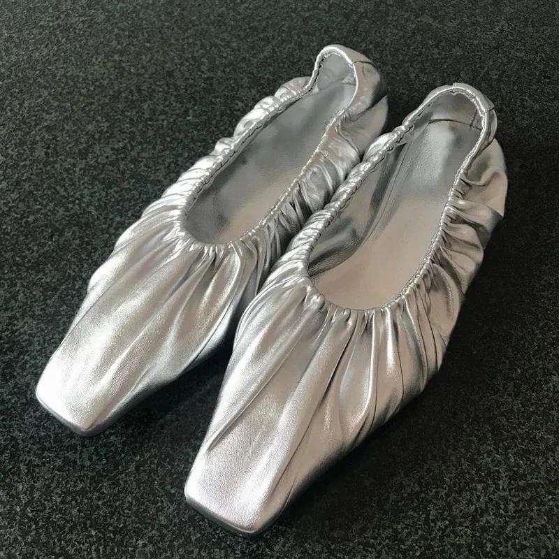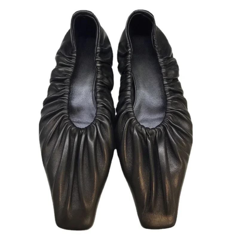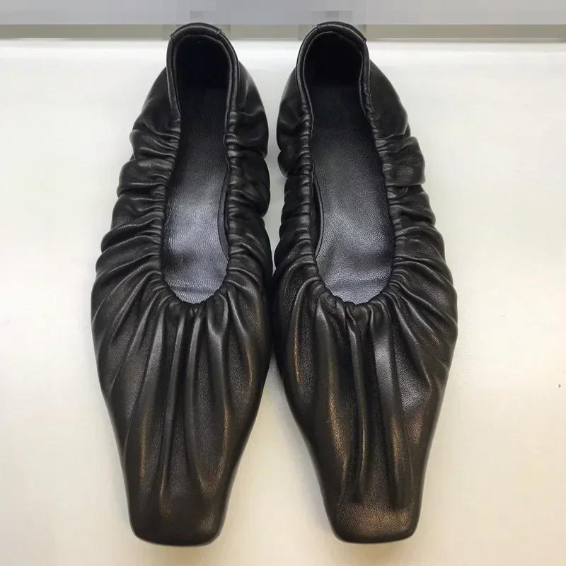 Модные плиссированные женские туфли на плоской подошве с квадратным носком, без застежек, туфли бабушки, мягкие, удобные, элегантные, дизайнерские туфли