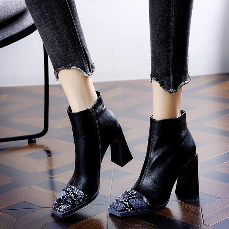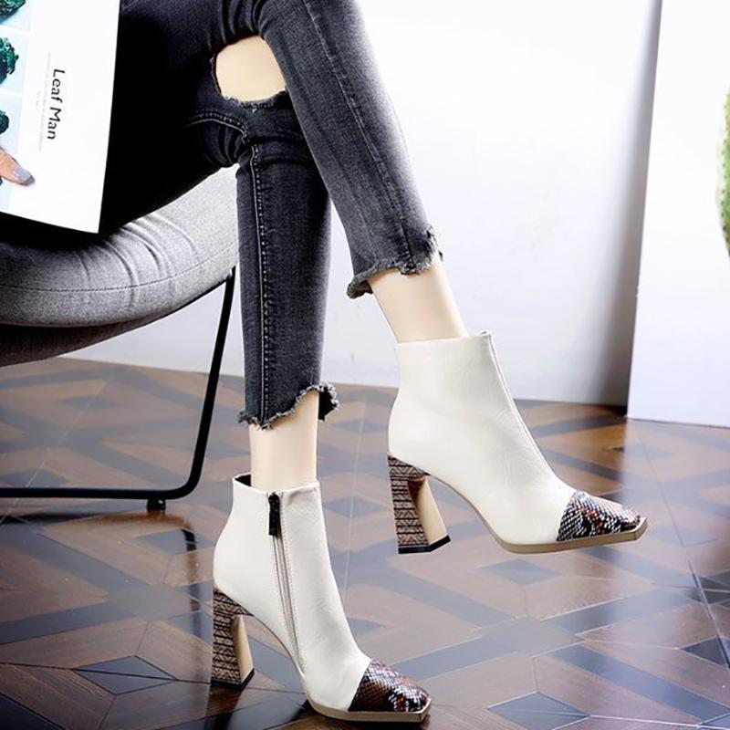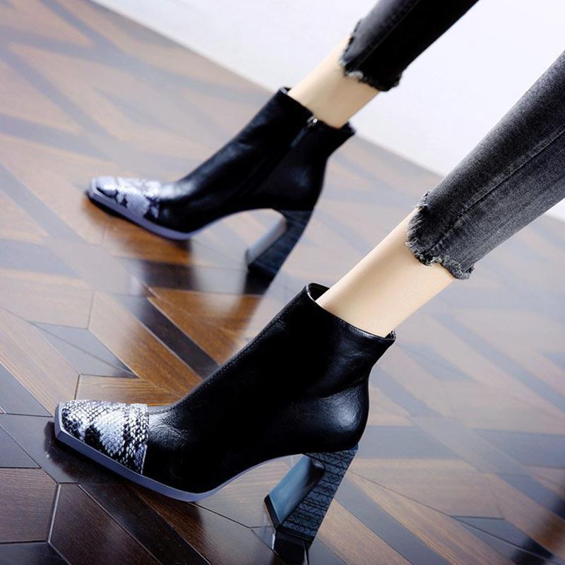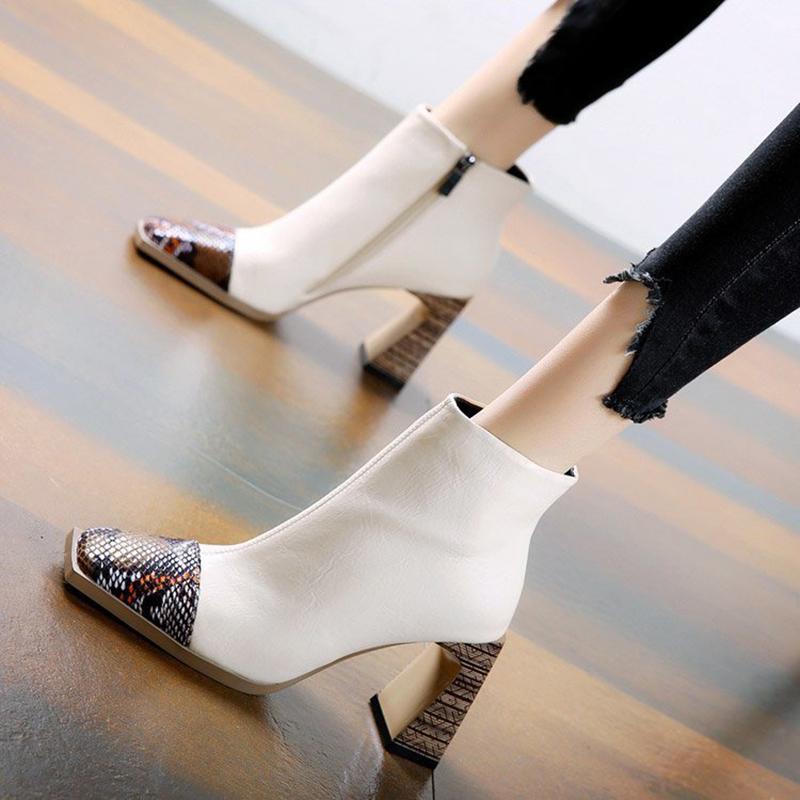 Модные ботильоны на каблуке 2024 Весна Осень Ботильоны Женские Модные Туфли На Высоком Каблуке С Квадратным Носком Для Женщин Короткие Ботинки Botas De Mujer