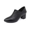 Натуральная кожа толстые каблуки глубокий носок одинарные туфли женские новые весна и осень новые женские туфли коровья кожа высокие каблуки