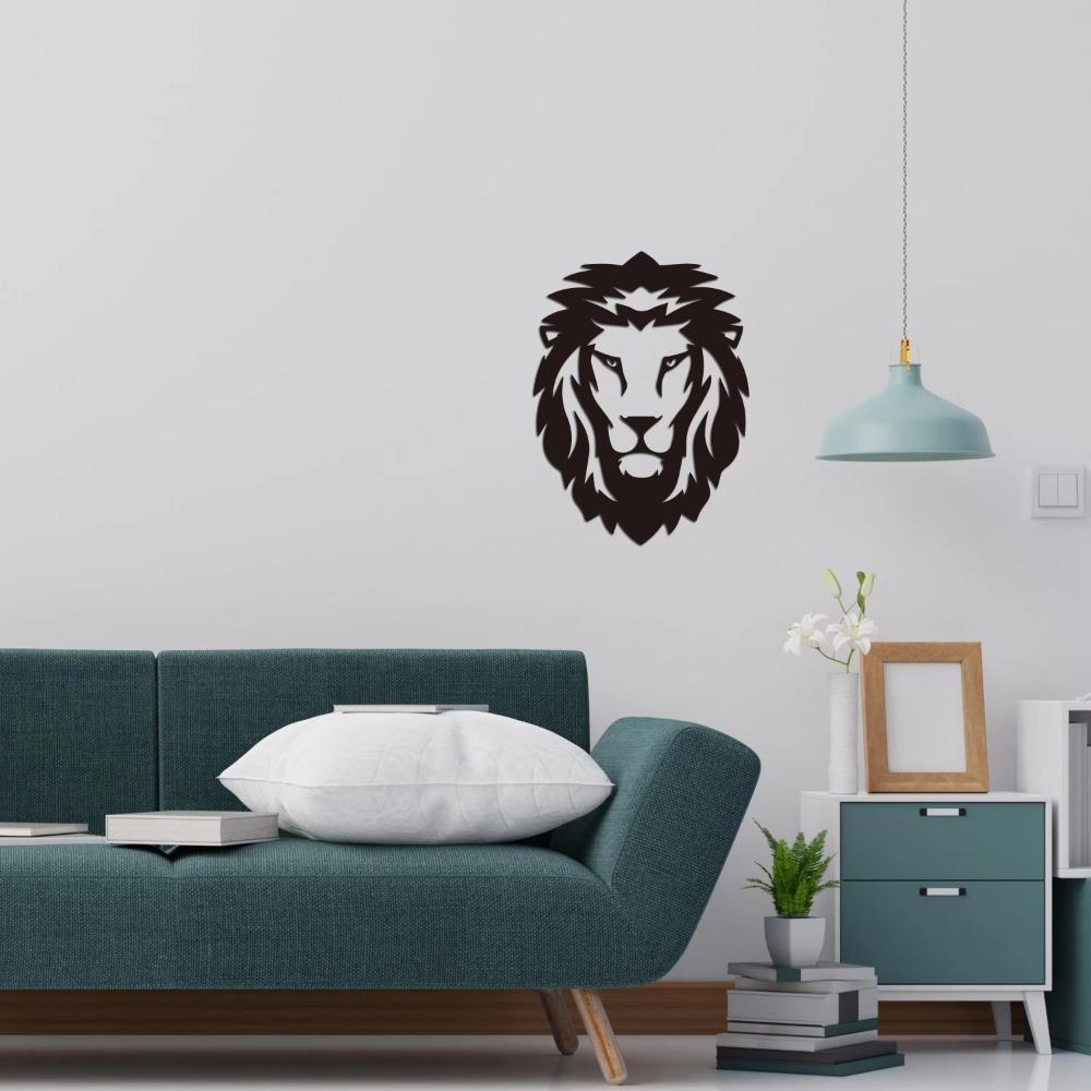 Геометрический лев, металлический настенный рисунок, черная голова льва, готический металлический настенный знак, стильный офисный декор и декор с дикими животными, уникальное настенное искусство