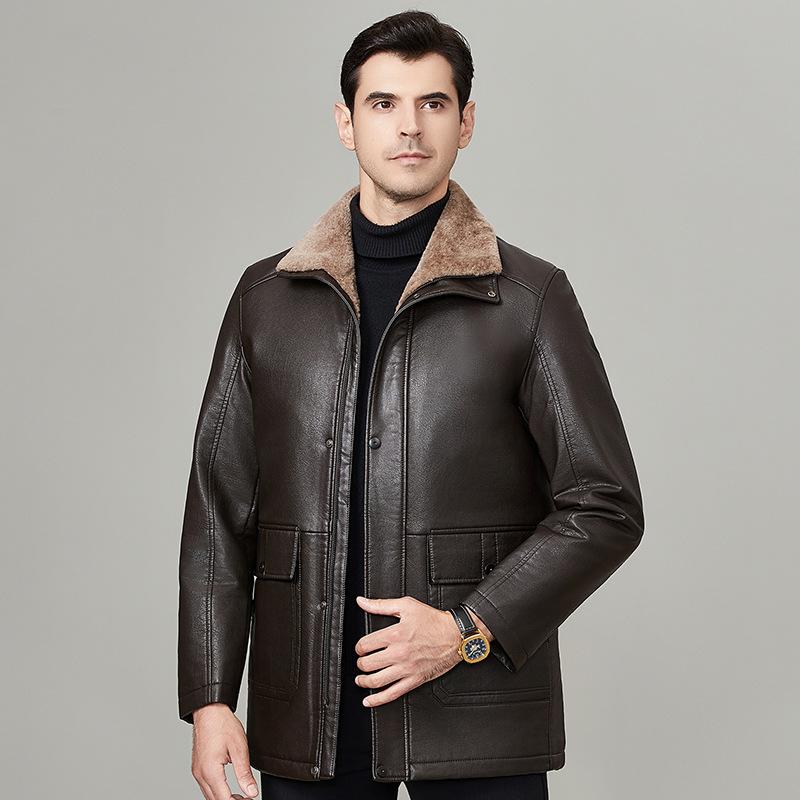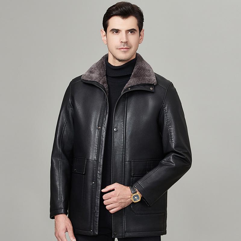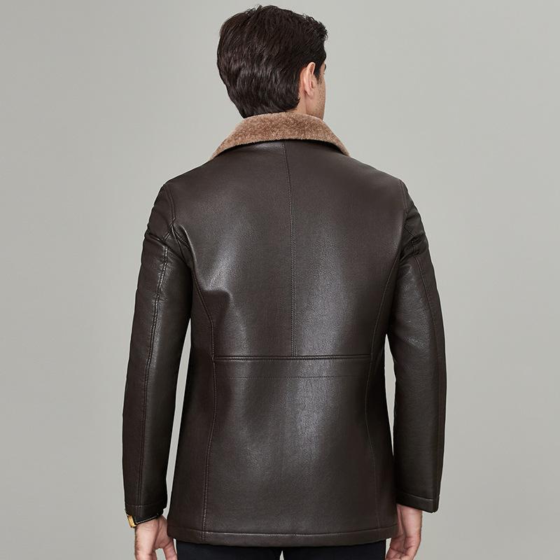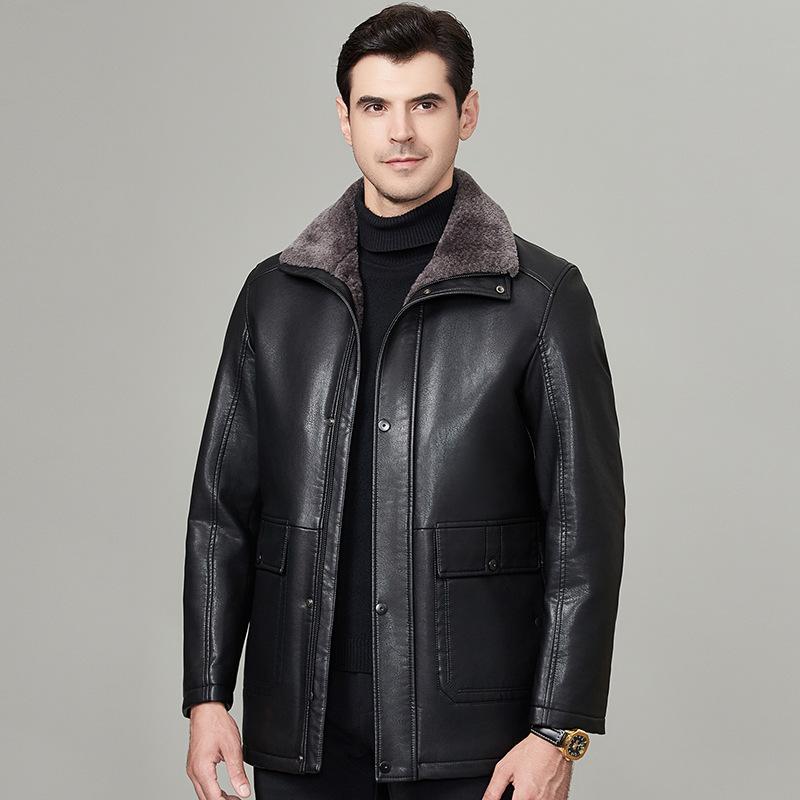 Мужская куртка из натуральной кожи на осень и зиму из овчины и меха, цельнокроеная, плюс бархат и утолщенная куртка для пап среднего возраста