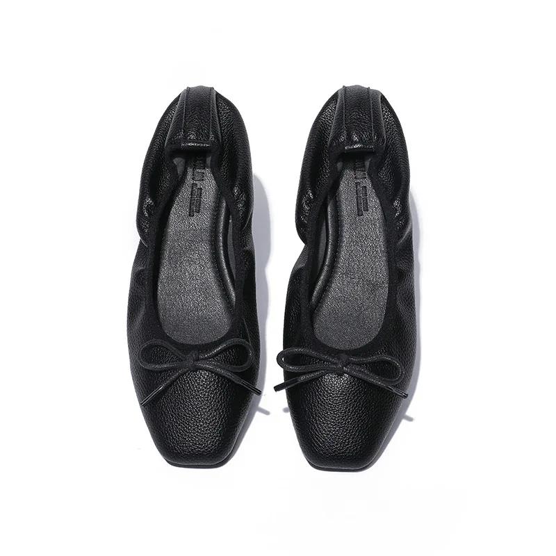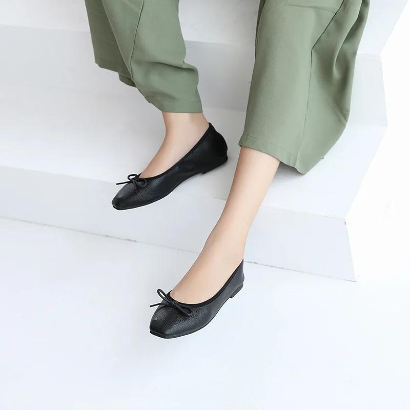 Модные женские туфли-лодочки из кожи с квадратным бантом, дышащие, удобные балетки для женщин, модные туфли без застежек на неглубоких каблуках для офиса