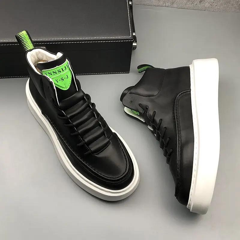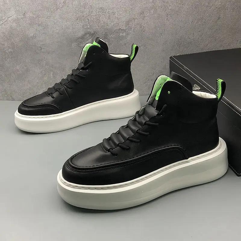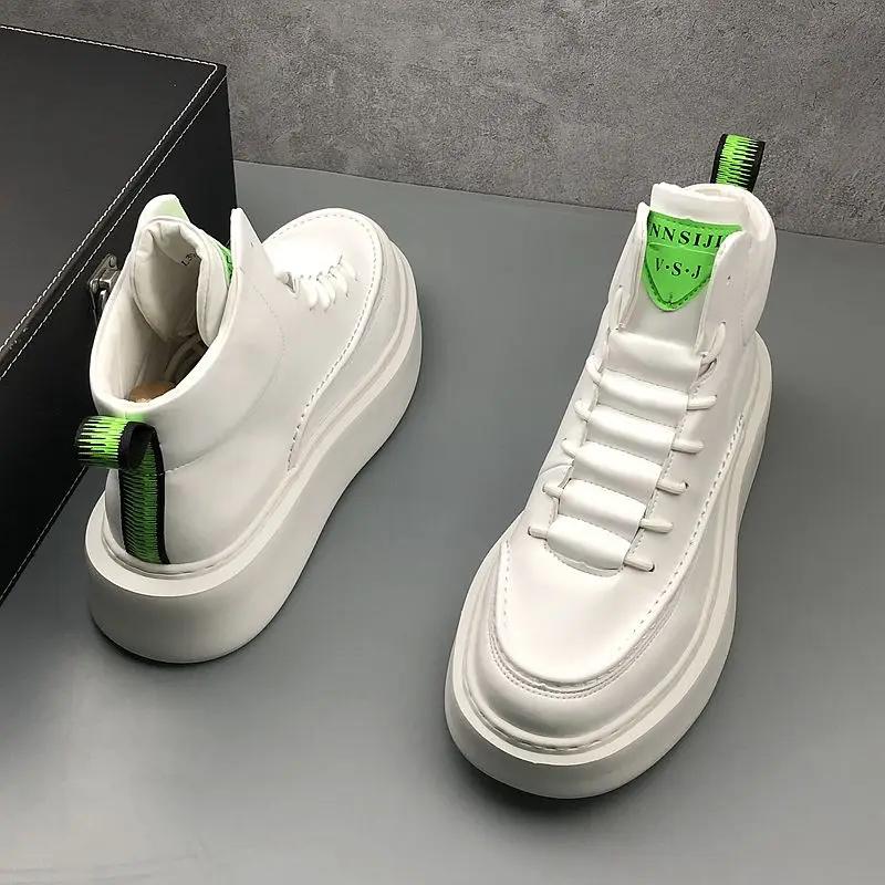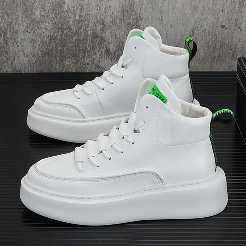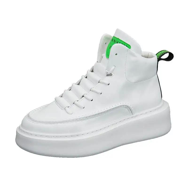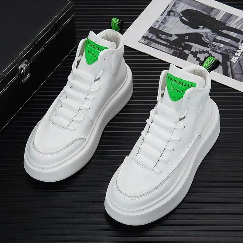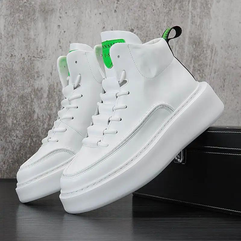 Брендовые мужские белые вулканизированные кроссовки, трендовые зимние высокие кроссовки, мужская обувь на платформе, удобная мужская кожаная обувь для скейтбординга