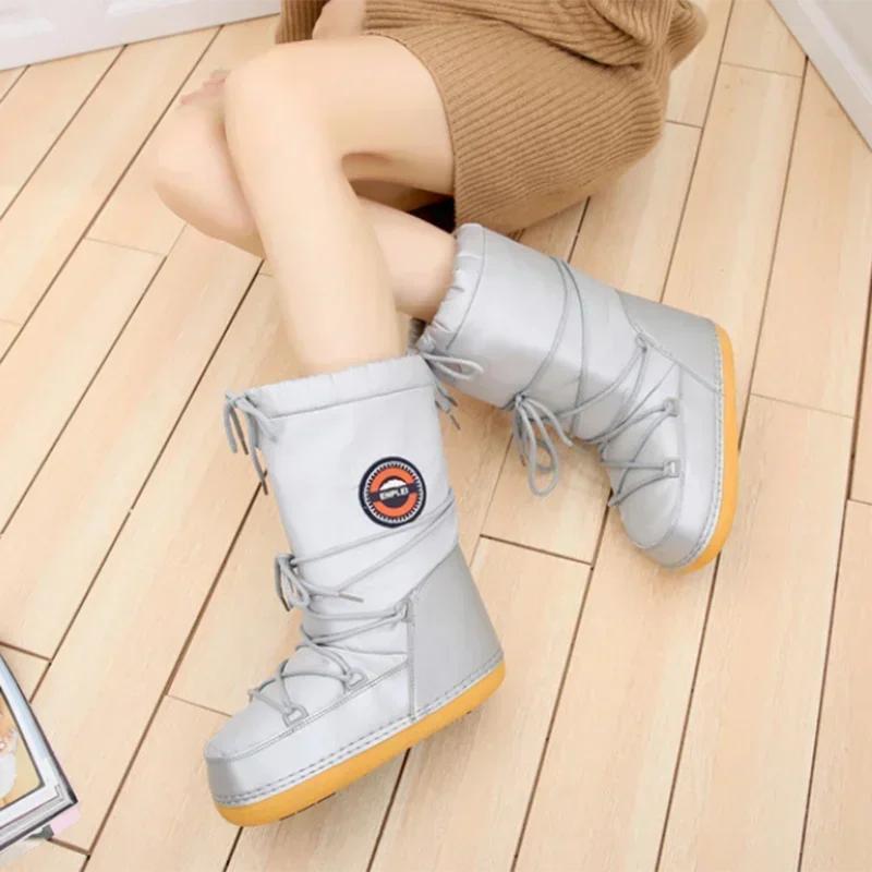 Модные женские ботинки, женские зимние ботинки для родителей и детей, модные теплые туфли на платформе со шнуровкой для женщин, водонепроницаемые нескользящие космические ботинки