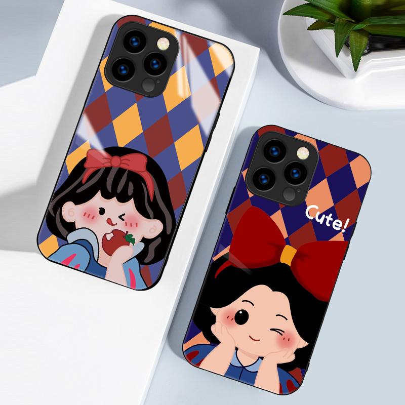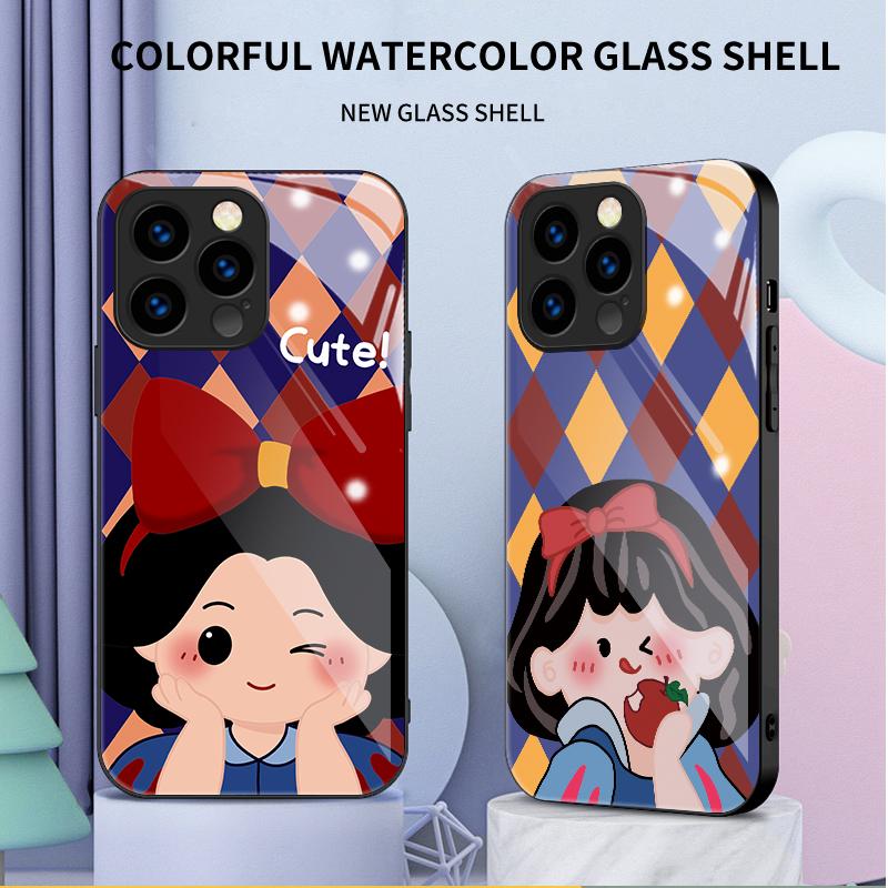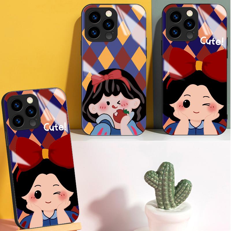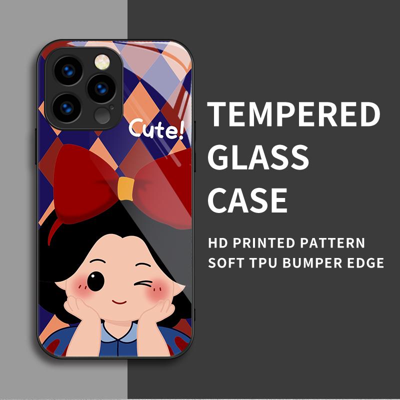 Закаленный стеклянный корпус с милым рисунком девушки из мультфильма, защитный чехол, мягкий чехол для iPhone Samsung