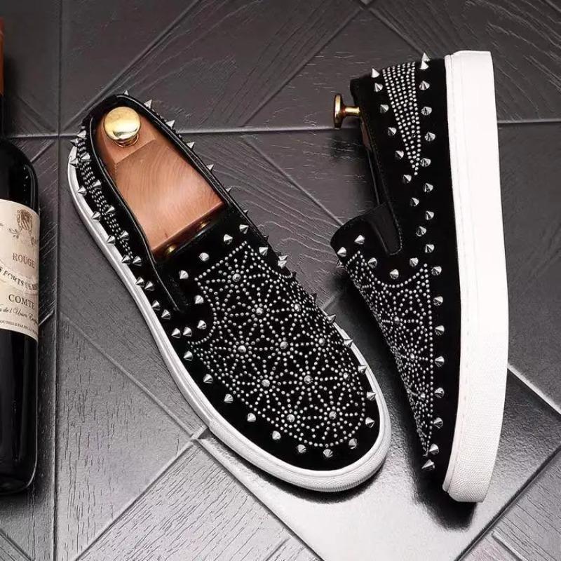 Новые мужские кроссовки Tide из кожи, повседневная обувь, модная роскошная обувь для скейтбординга на плоской подошве с заклепками, мужские туфли для отдыха, мокасины без застежек, обувь для мужчин