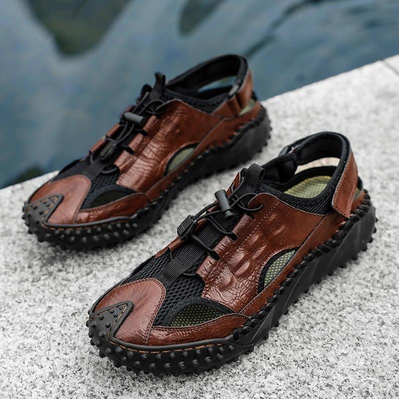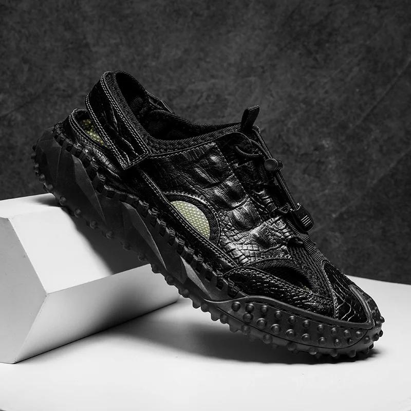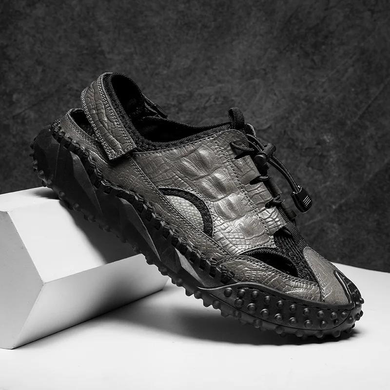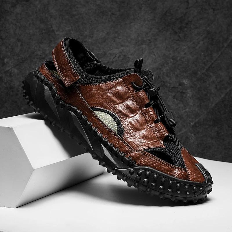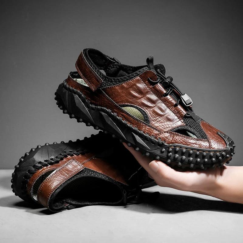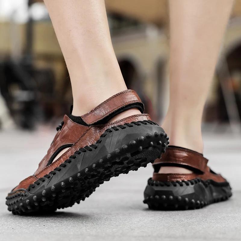 Мужские сандалии из натуральной кожи для улицы, летние, мужская повседневная обувь, пляжные сандалии, мужские модные повседневные кроссовки