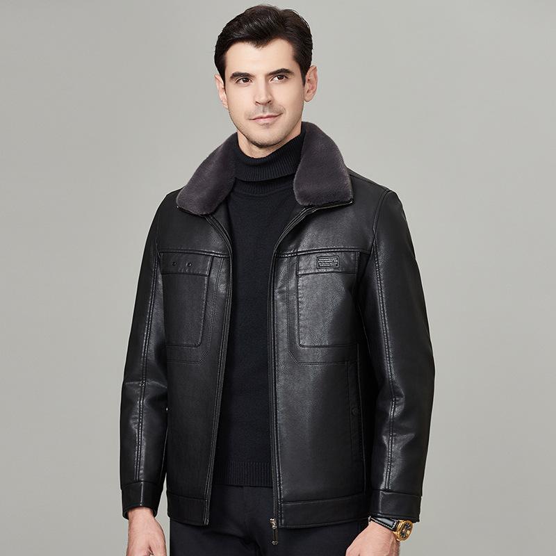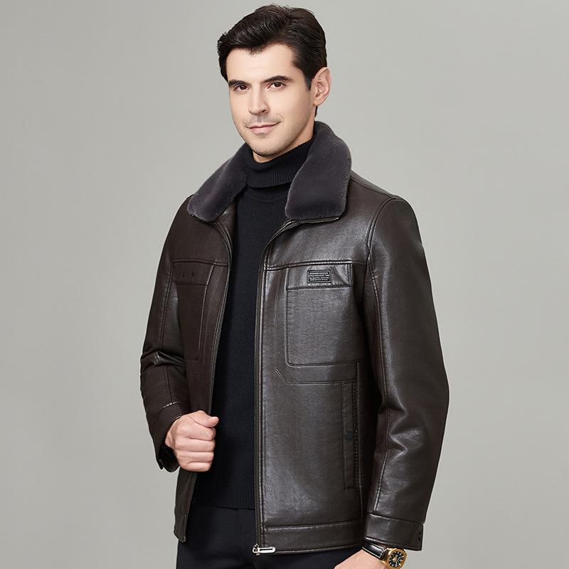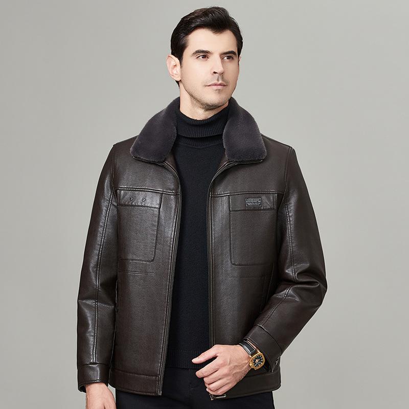 Куртка из натуральной кожи мужская овчина меховая интегрированный бархат утолщенный папа зимняя кожаная куртка куртка