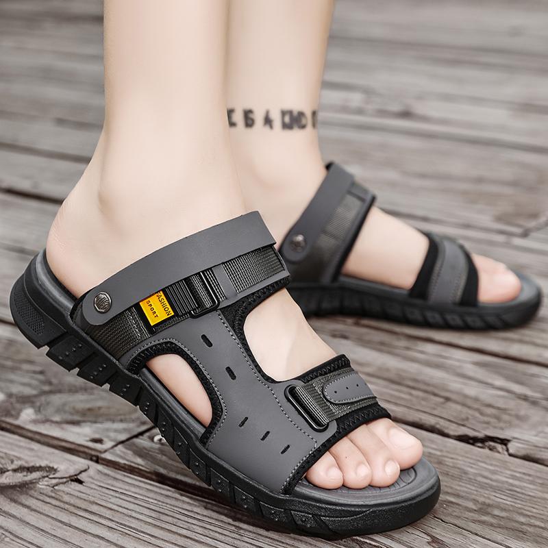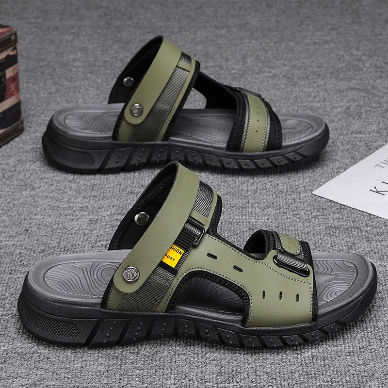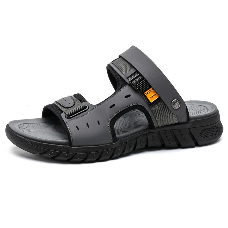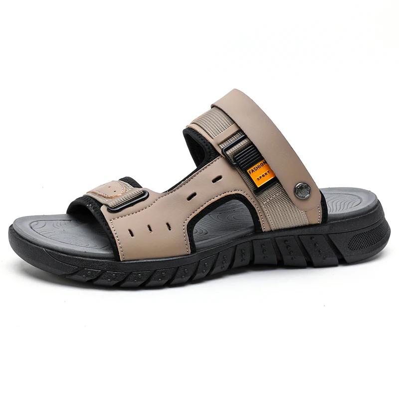Модные летние сандалии для мужчин, повседневные уличные тапочки с кожаным верхом, нескользящие дышащие римские туфли, пляжные тапочки для мужчин