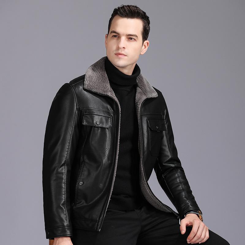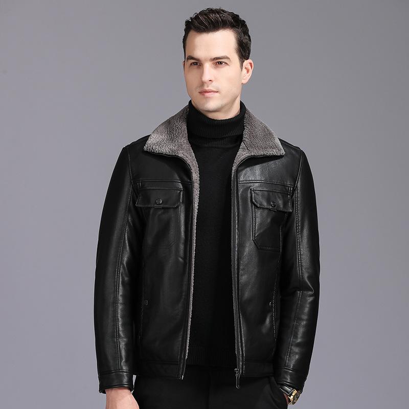 Кожаная куртка мужская зимняя бархатная утолщенная овчина натуральная кожаная куртка для папы среднего возраста верхняя одежда
