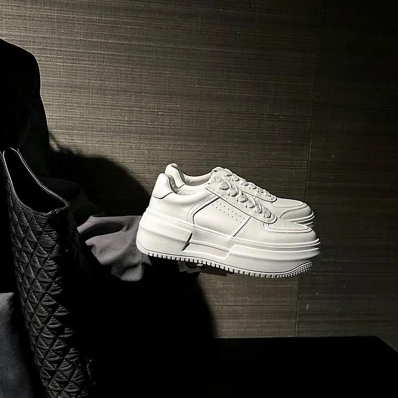 Fashion New Spring Autumn Platform Women Sneakers White Genuine Leather Shoes Thick Bottem Casual Shoes Women Increase Vulcanize Shoes