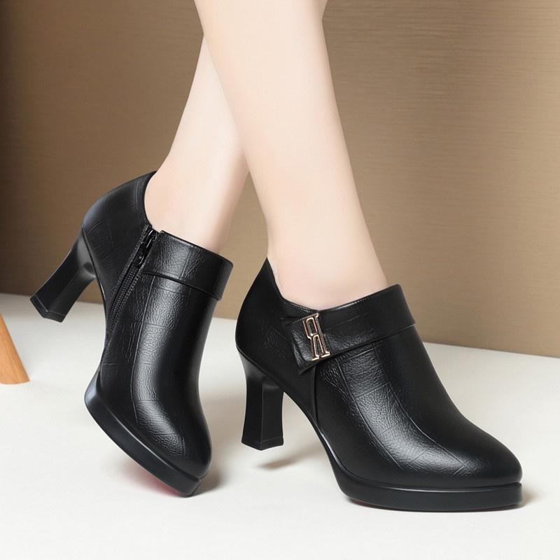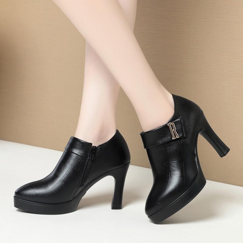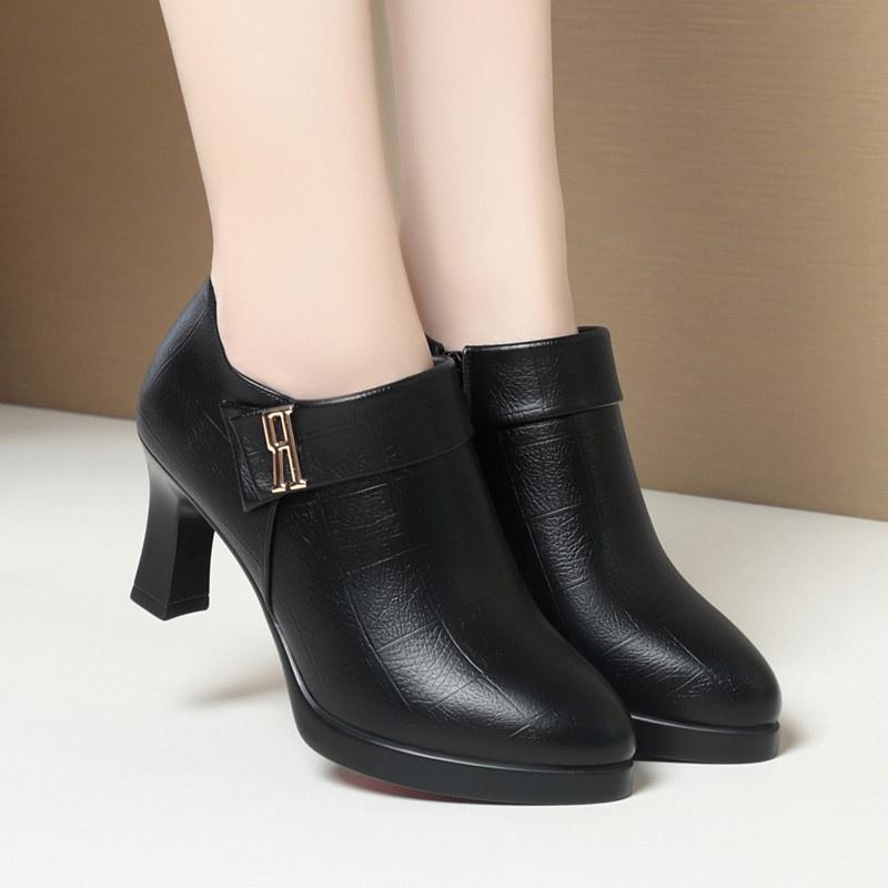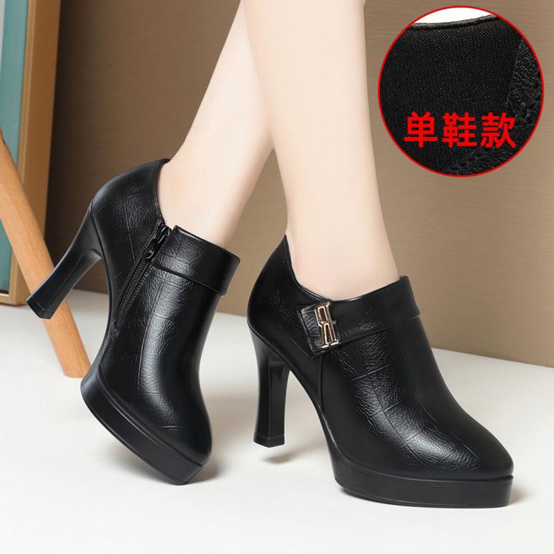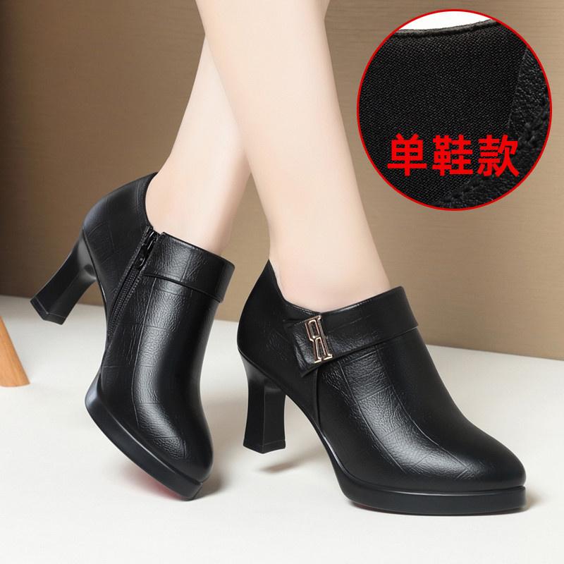 Модные весенне-осенние универсальные мягкие кожаные туфли женские элегантные туфли на шпильках с глубоким носком для офиса и делового платья водонепроницаемые туфли на платформе