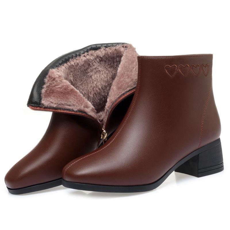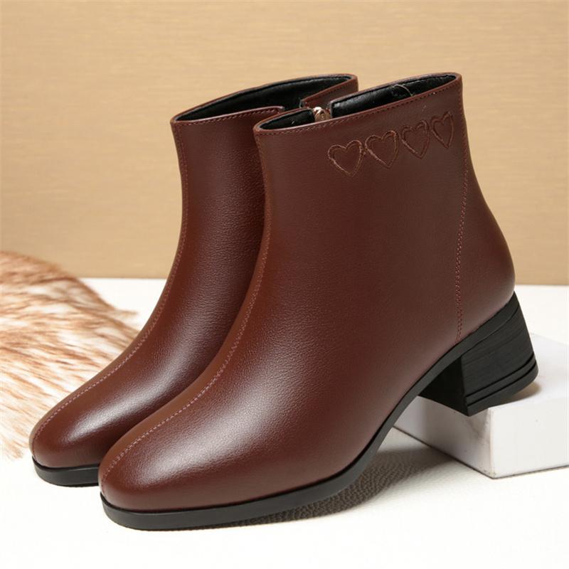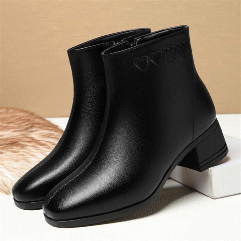 Модные осенне-зимние мягкие кожаные новые универсальные женские однотонные модные ботинки с молнией сзади на толстом каблуке из хлопка