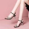 Модные женские сандалии на высоком каблуке из прозрачного хрусталя 2024 Лето Квадратный носок С пайетками Элегантный сказочный стиль До щиколотки Черные туфли для вечеринки