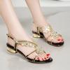 Модные летние женские сандалии с открытым носком, кожаные, с ромбовидным узором, на низком каблуке, универсальные, для отдыха на открытом воздухе, нескользящие, пляжные туфли