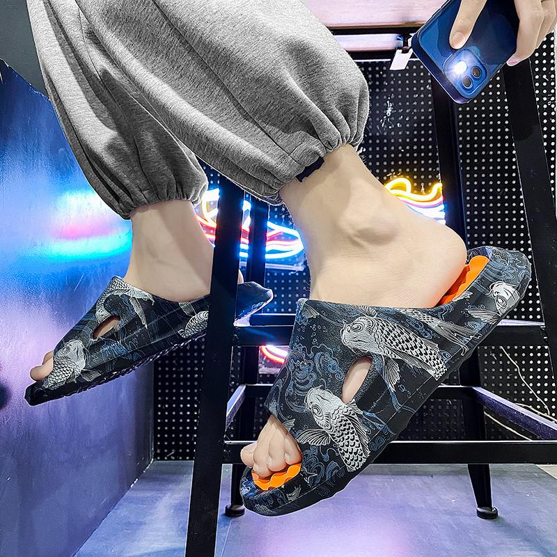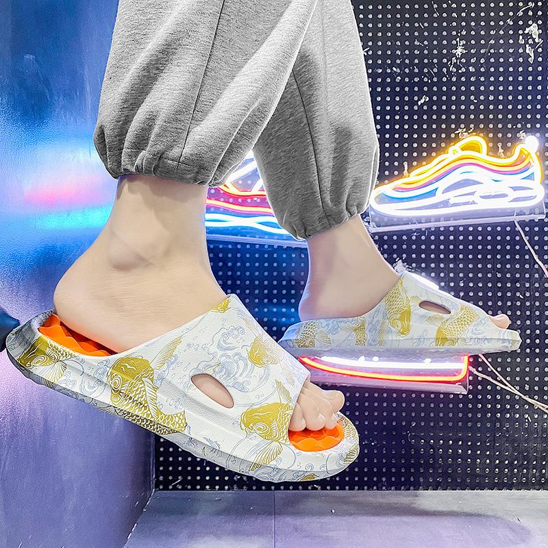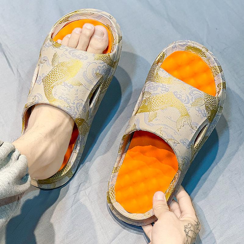 Модные оригинальные новые стильные тапочки мужские сандалии летняя мода толстая подошва нескользящая повседневная камуфляжная пляжная обувь
