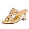 Модные женские дышащие босоножки со стразами и цветочным узором, летние модные новые кожаные тапочки, нескользящие босоножки с ромбами на толстом каблуке