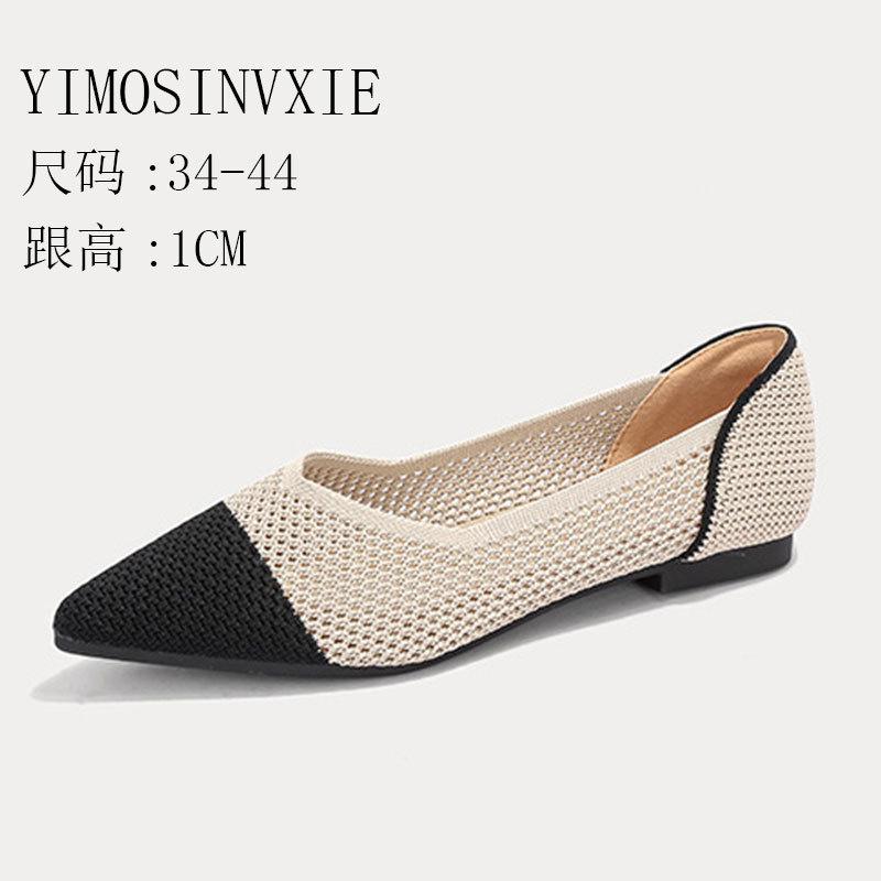 Модные летние сетчатые дышащие женские трикотажные туфли с полым носком 2024 года, новые модные повседневные удобные туфли на плоской подошве с острым носком