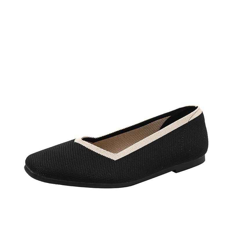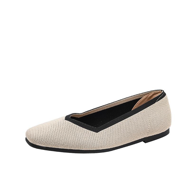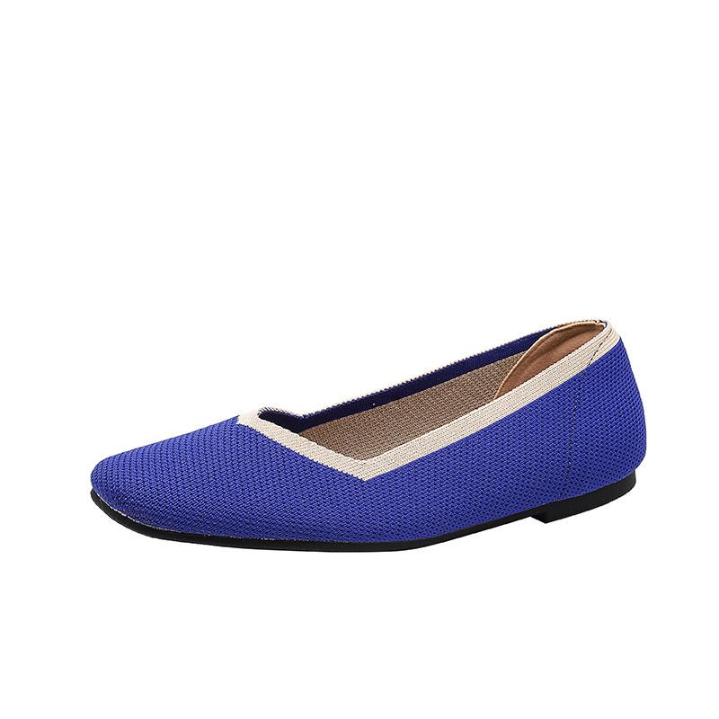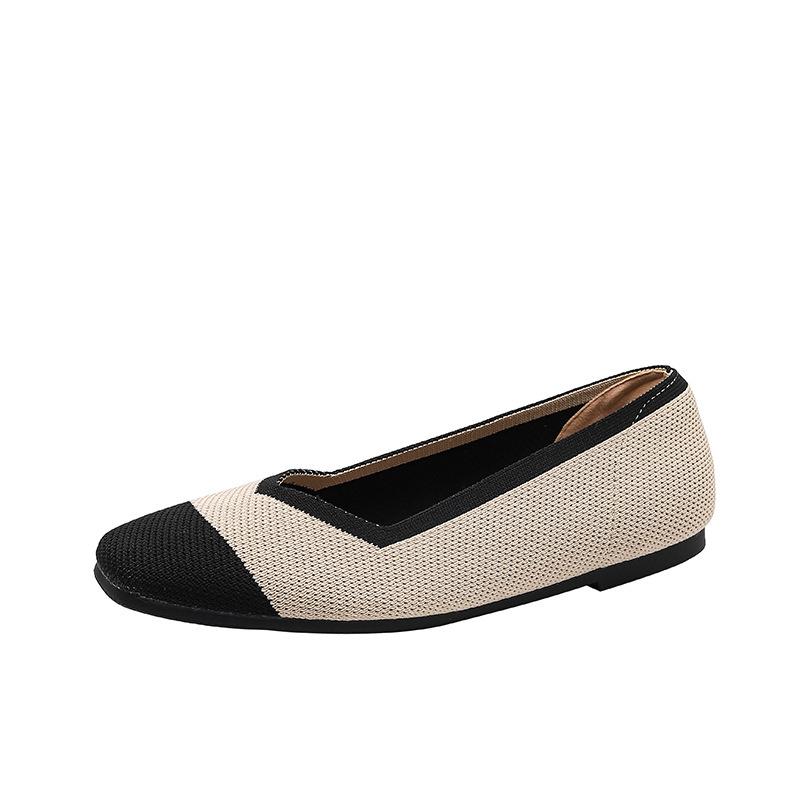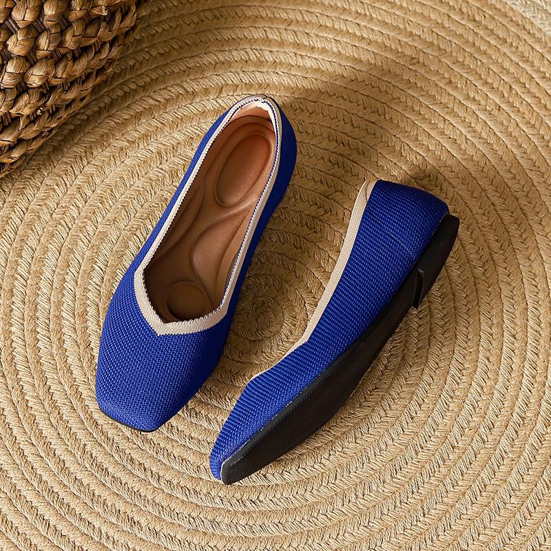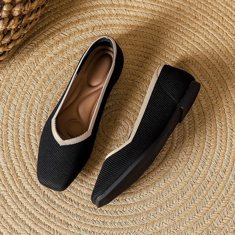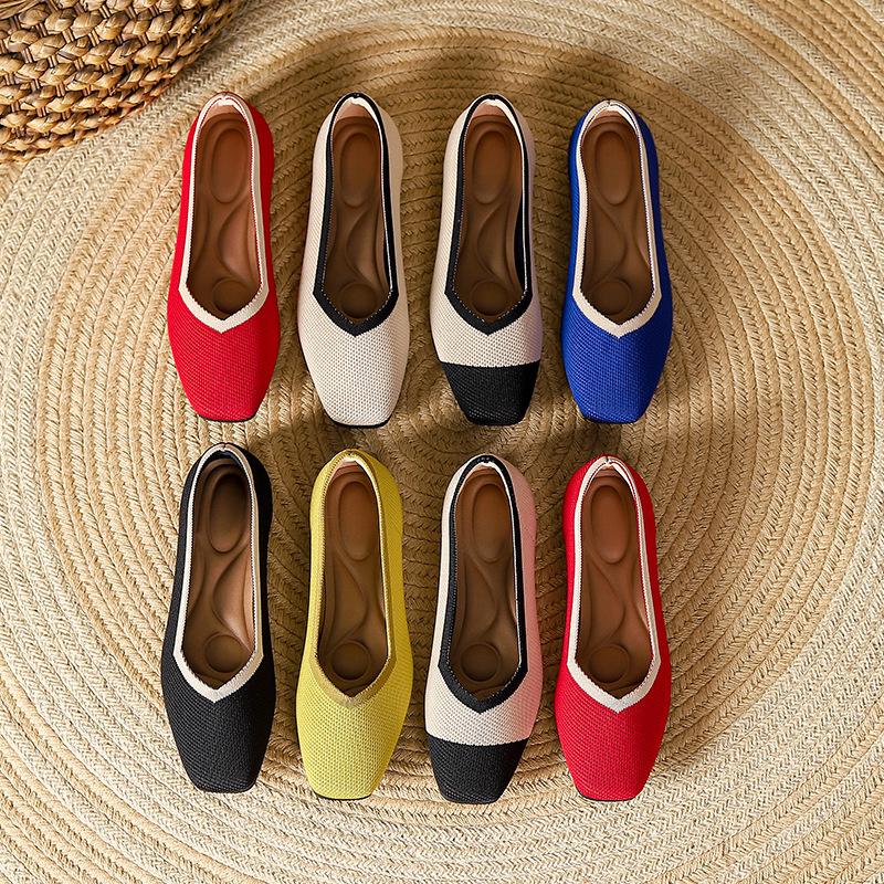 Мода Женщины Весна Лето Комфорт Мода Вязание Летающая Линия Балетки Роскошные С мелким вырезом Квадратный носок Мягкая подошва Одинарная обувь