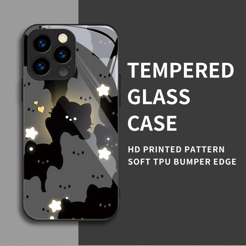 Закаленный стеклянный корпус с милым рисунком мультяшных котов защитный чехол из ТПУ мягкий чехол для iPhone Samsung