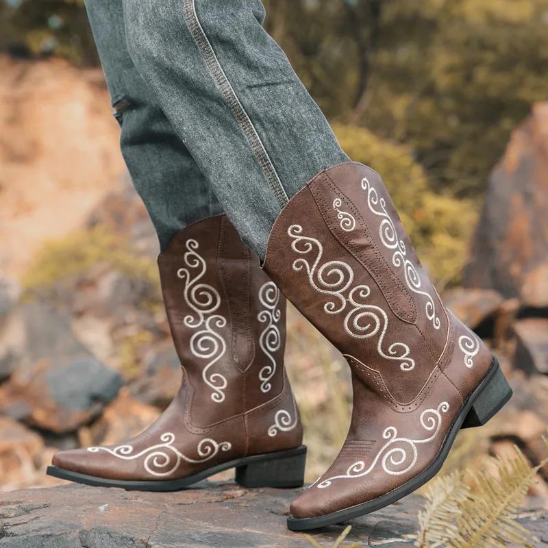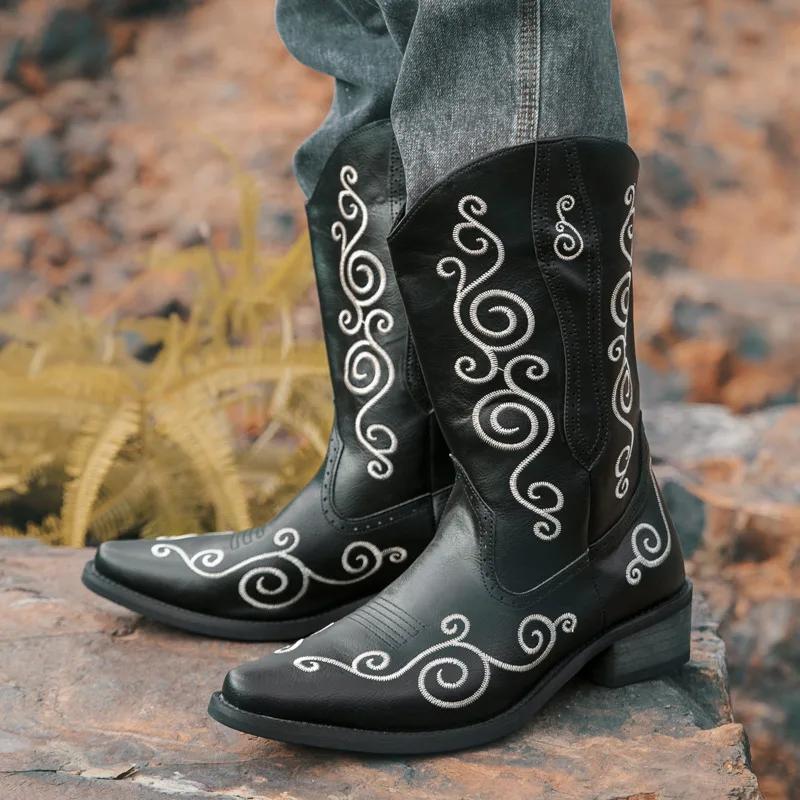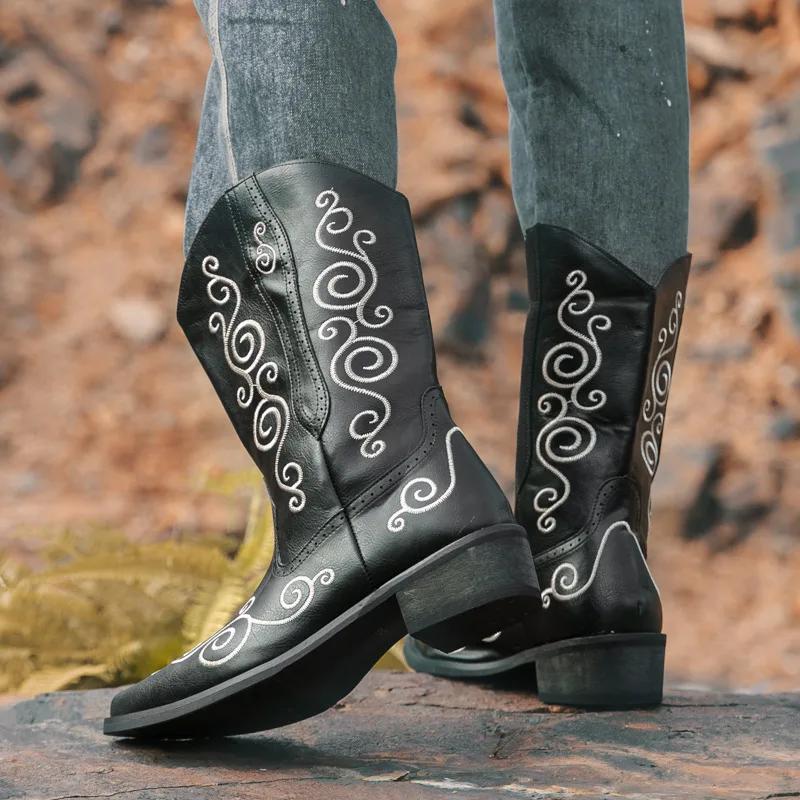 Модные ретро-модные вышитые ковбойские сапоги для мужчин с острым носком, кожаные ковбойские сапоги большого размера 46, высокие сапоги для мужчин, Botas Hombre