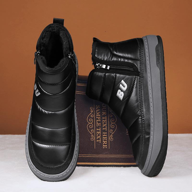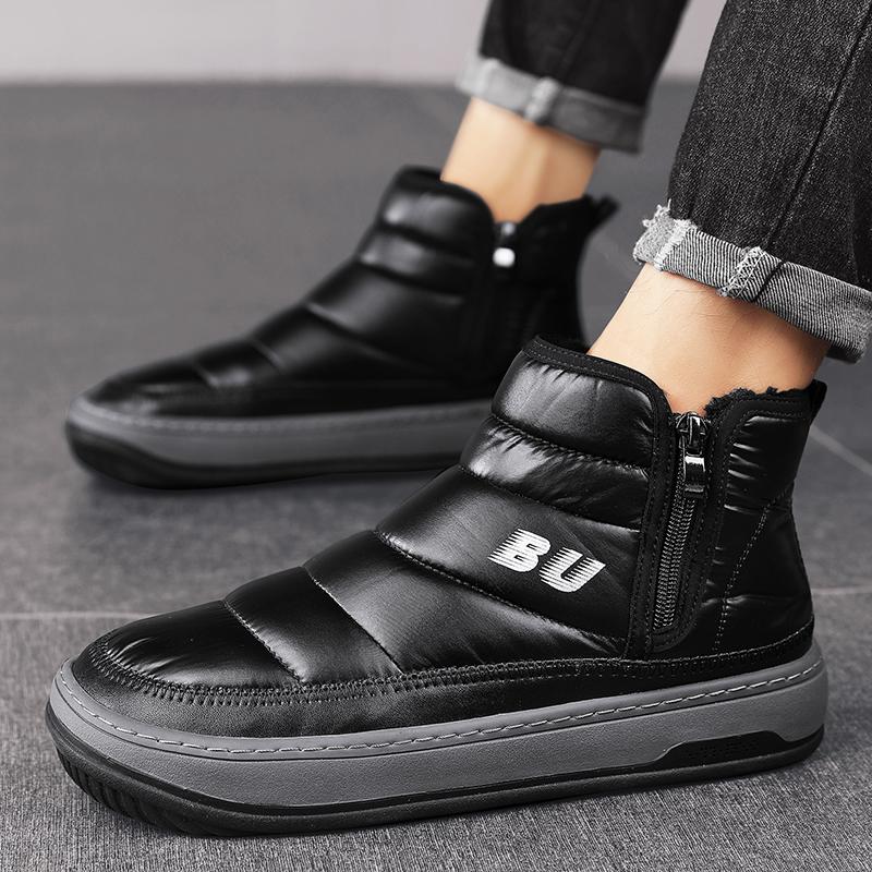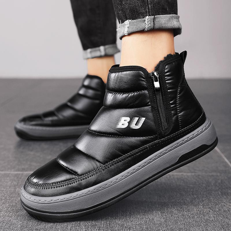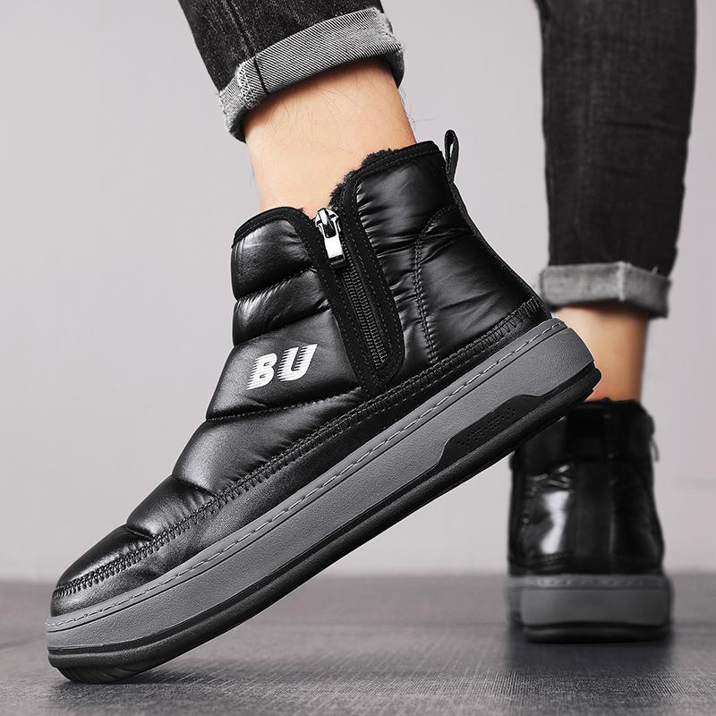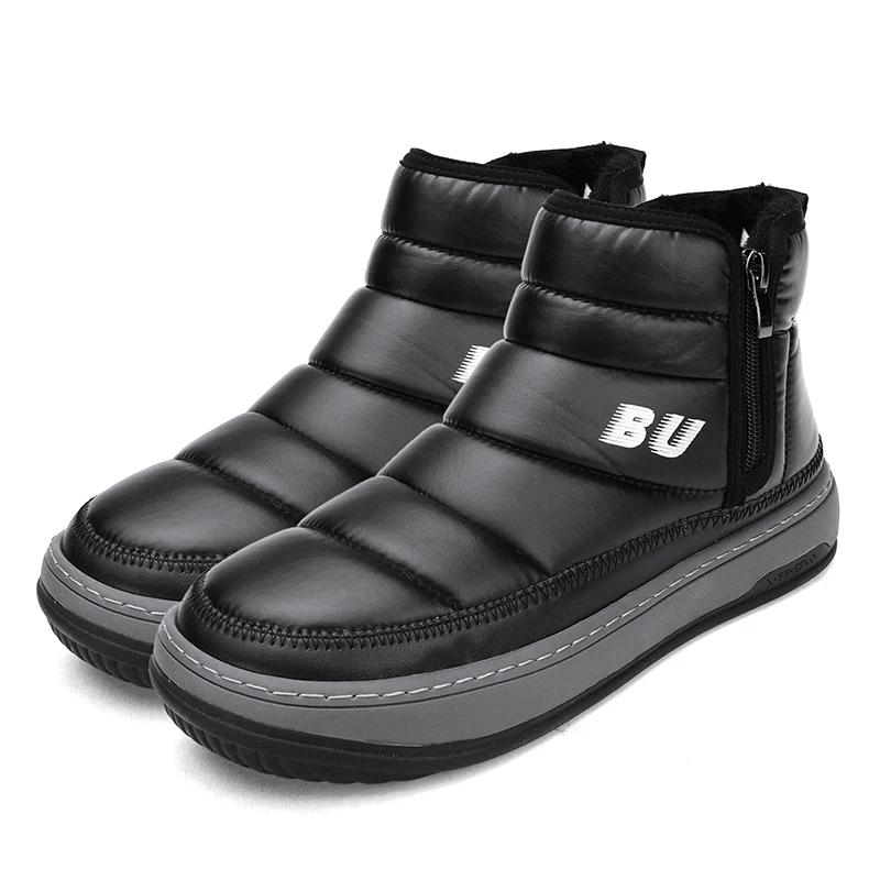 Модные черные зимние ботинки мужские меховые теплые удобные зимние сапоги уличные водонепроницаемые пуховые сапоги высокие ботильоны на платформе