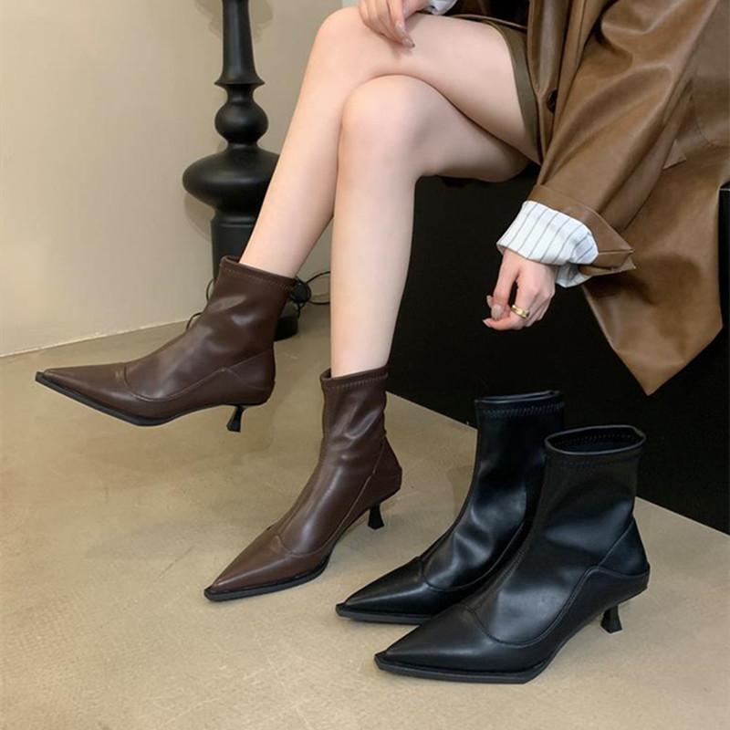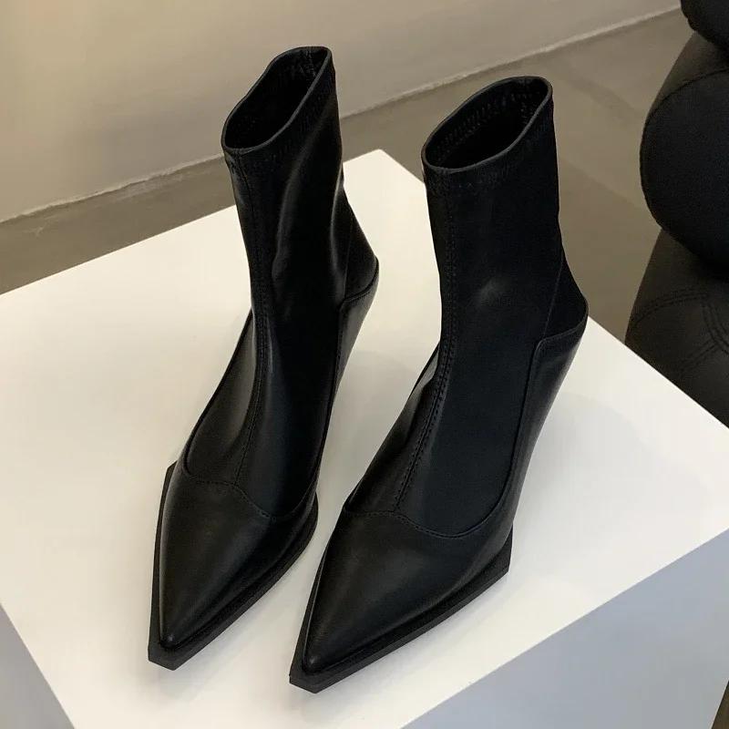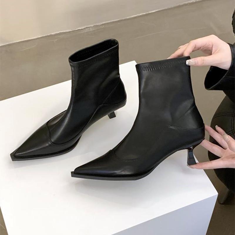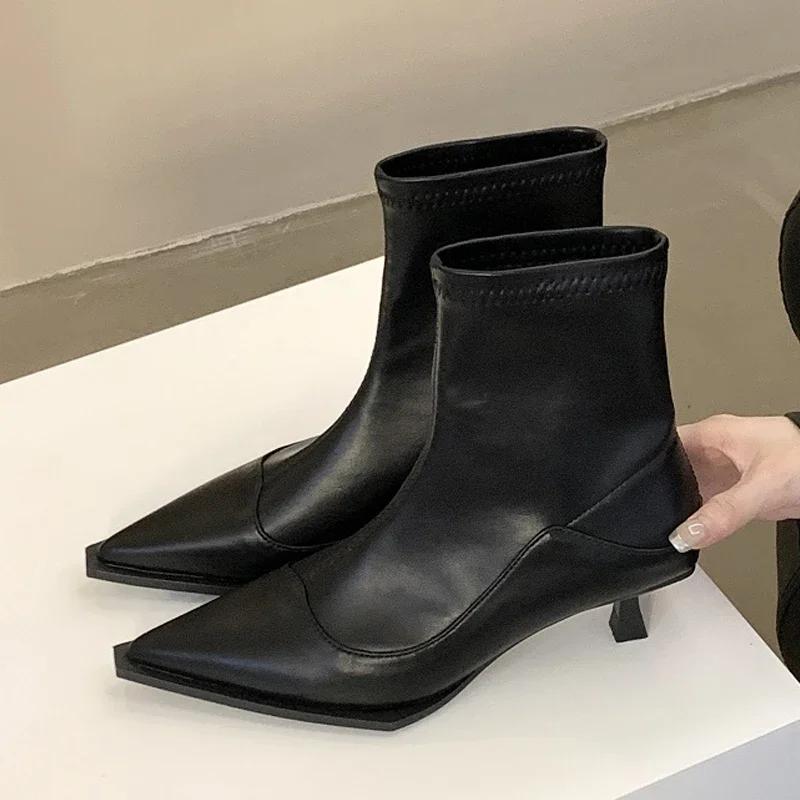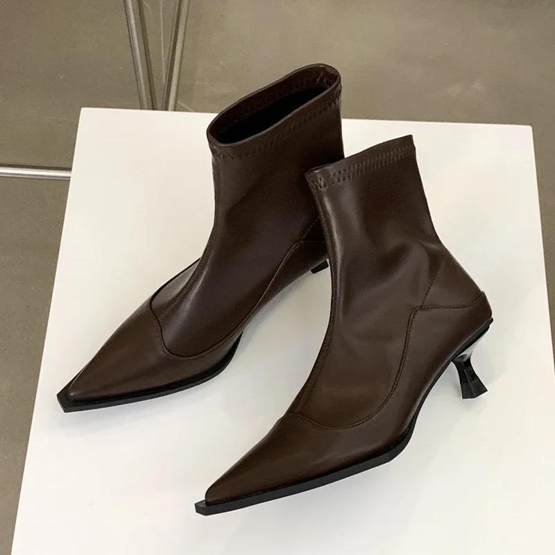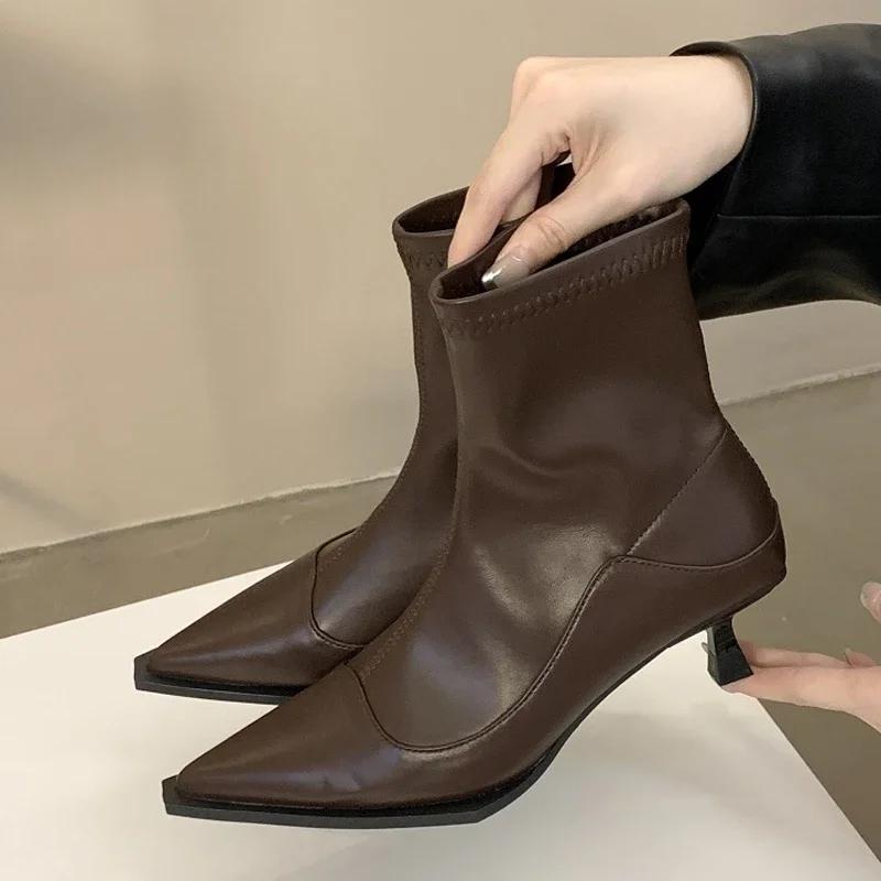Модные сексуальные остроносые мягкие кожаные дизайнерские ботинки для женщин 2024 года, модные тонкие низкие каблуки, ботильоны для женщин Zapatos Mujer