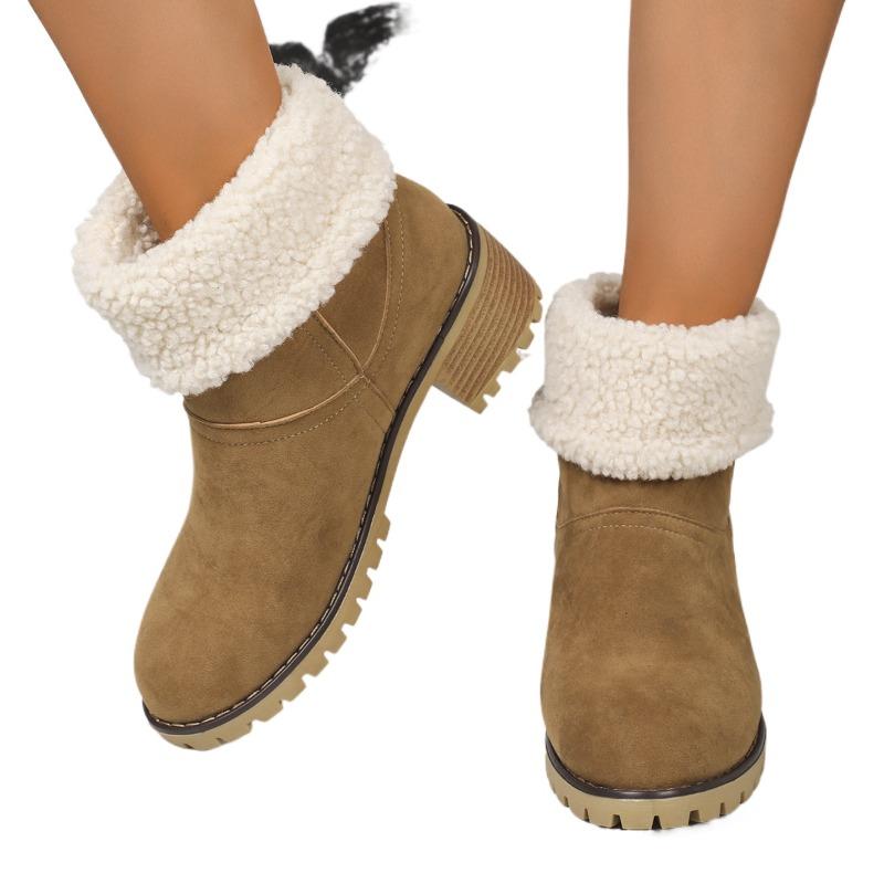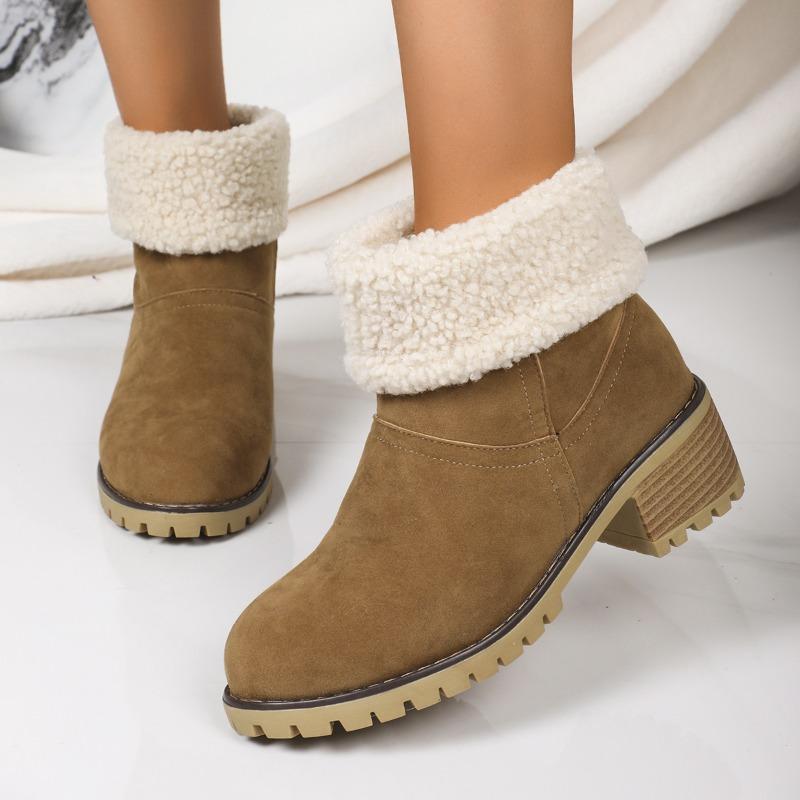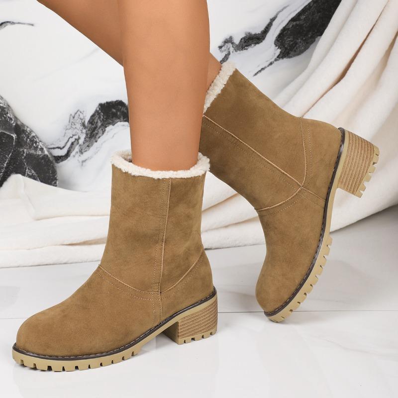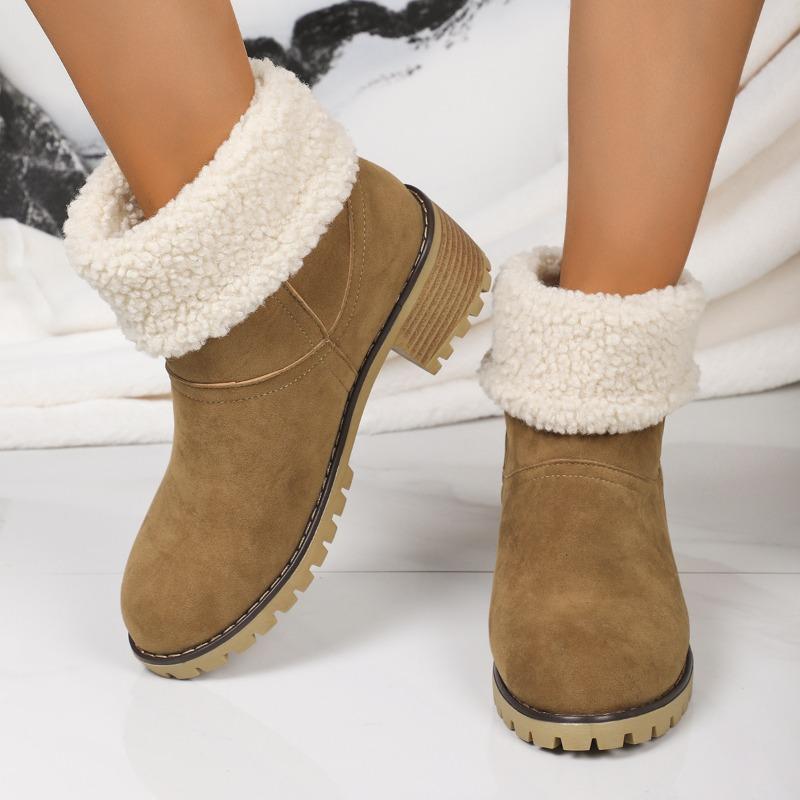 Модные зимние теплые плюшевые женские ботинки с круглым носком 2024 горячая распродажа новая мода квадратный каблук износостойкая обувь для женщин ботильоны женские