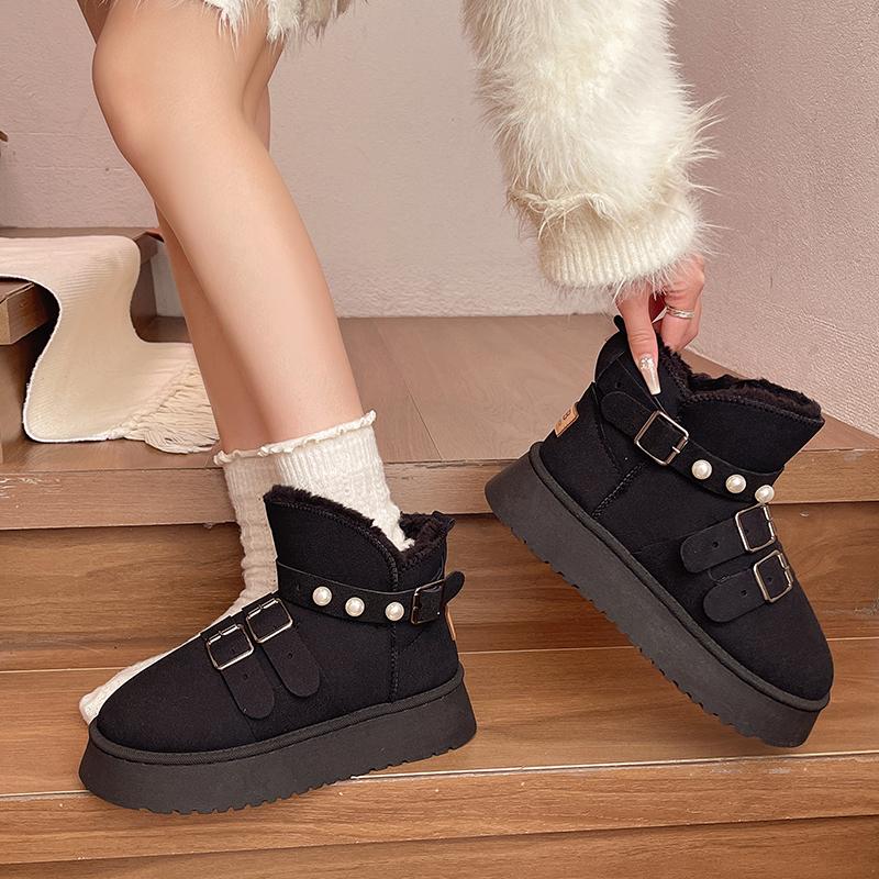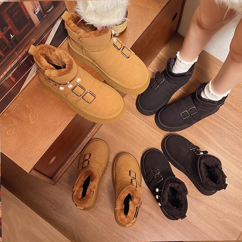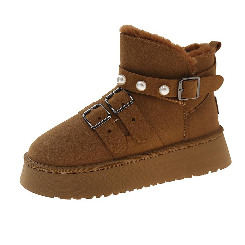 Модные женские зимние ботинки с пряжкой, толстая подошва, зимние теплые плюшевые ботинки 2024 года, горячая распродажа, модные однотонные повседневные удобные ботинки