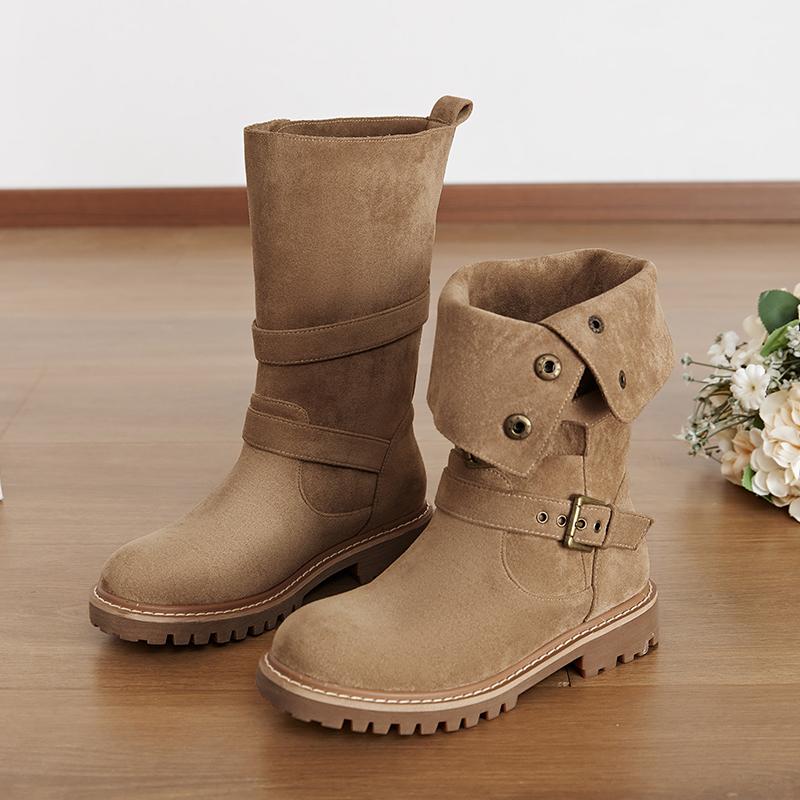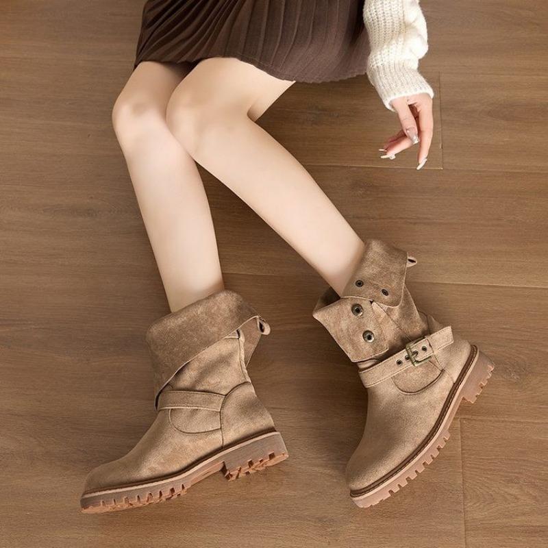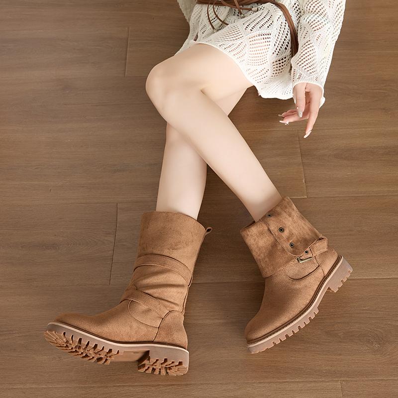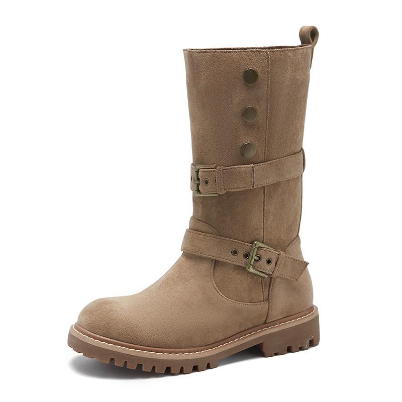 Модные летние сапоги до середины голени 2024 года, современные туфли на квадратном каблуке, женские высококачественные туфли без застежек с круглым носком, однотонные женские сапоги в стиле панк