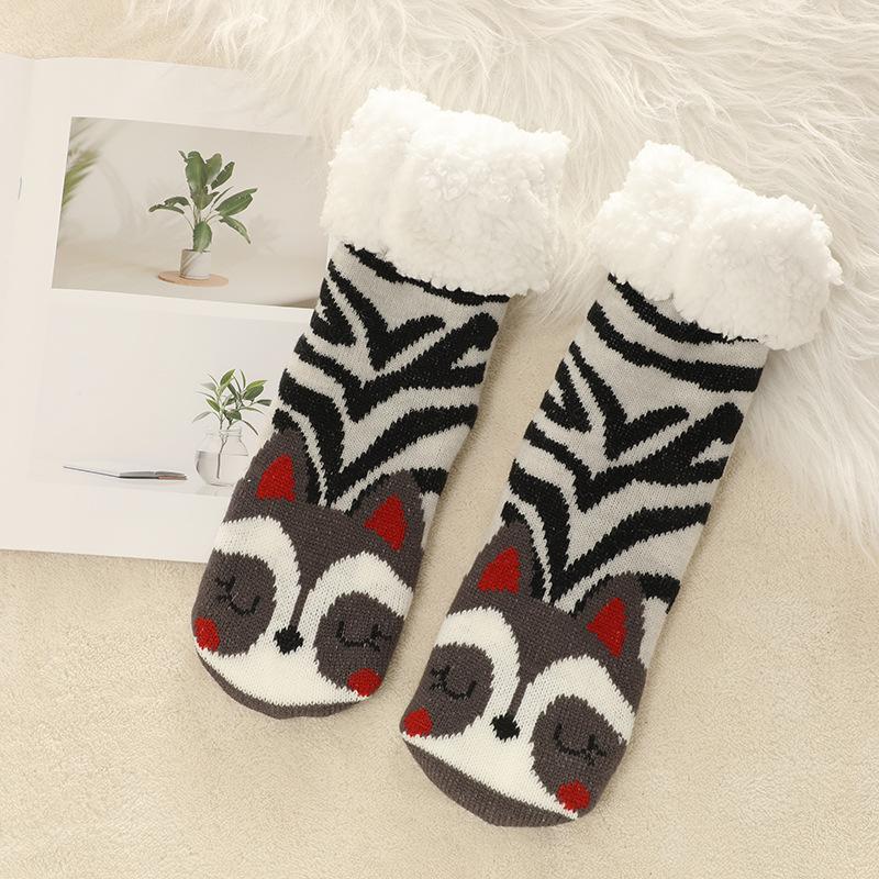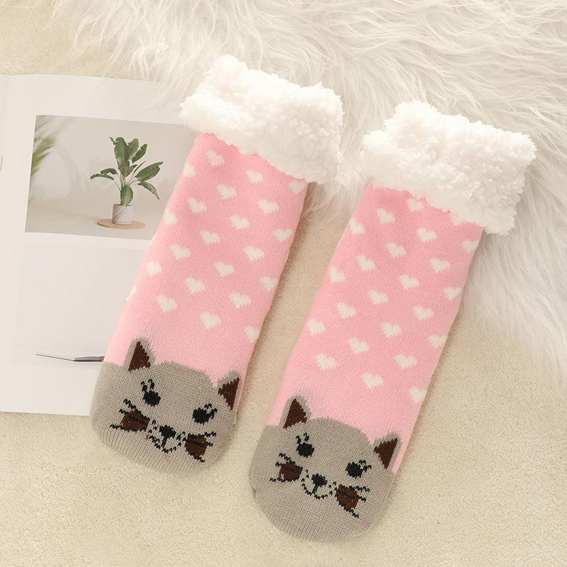 Женские зимние толстые носки-тапочки с захватами, нескользящие теплые пушистые носки с мягкой флисовой подкладкой, домашние носки-захваты для женщин, милые пушистые носки-тапочки