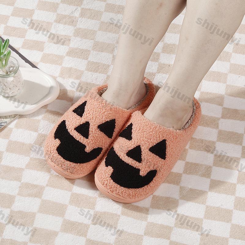 Женские хлопковые тапочки с рисунком тыквы на Хэллоуин, теплые зимние хлопковые тапочки для пар, мягкие, удобные, нескользящие домашние тапочки