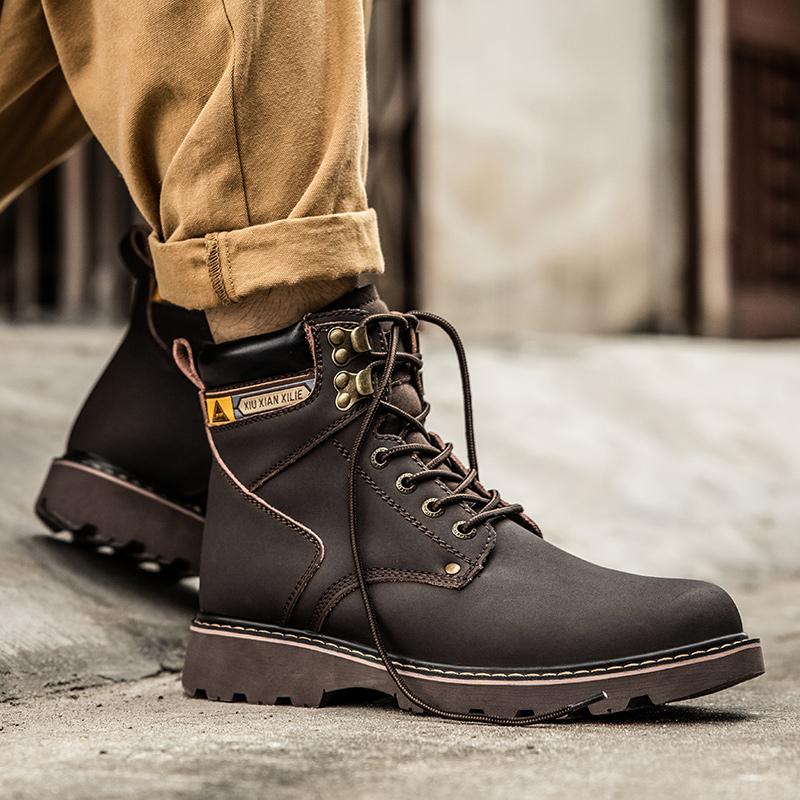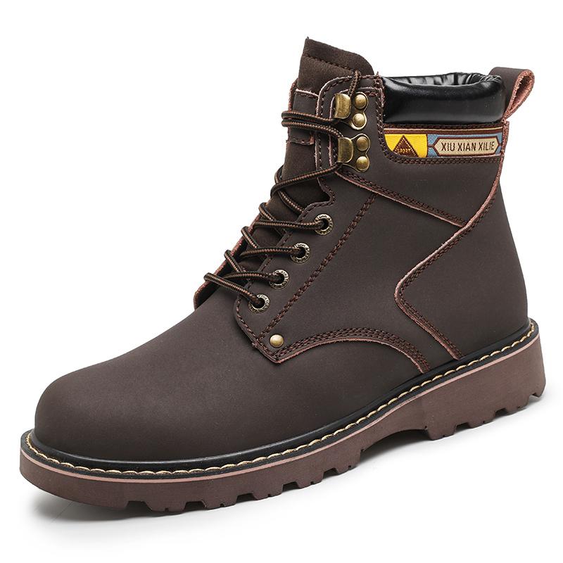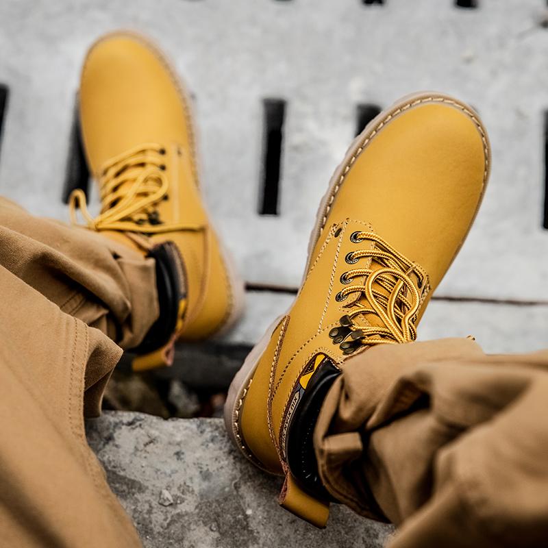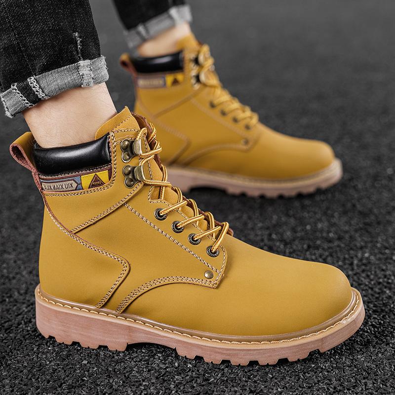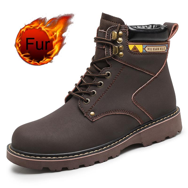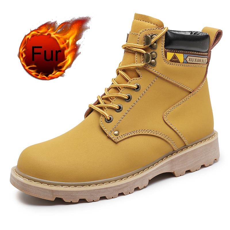 Модные мужские осенне-зимние ботинки до щиколотки желто-коричневые с мехом из натуральной кожи повседневная обувь высокого качества для мужчин на открытом воздухе рабочая обувь 2024