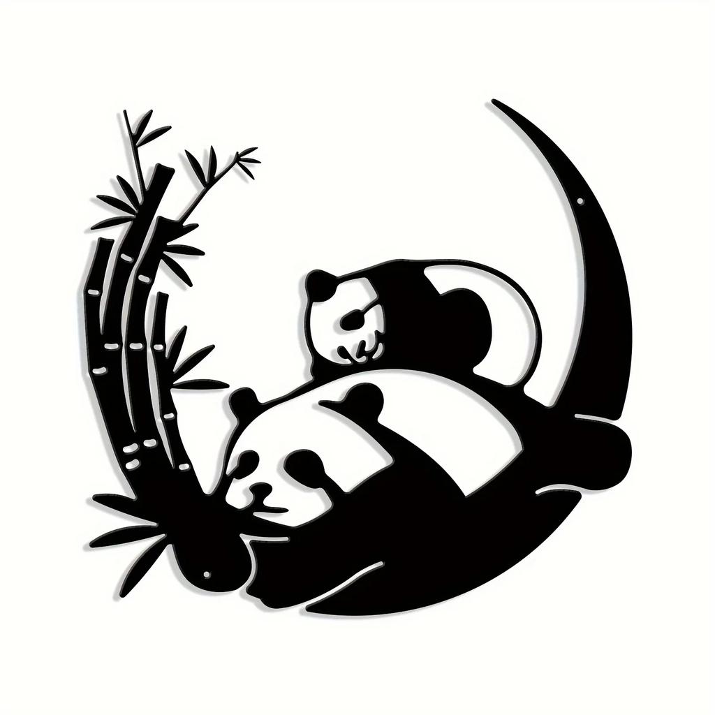 Панда Металлическая настенная скульптура силуэта животного Современный фермерский дом Черный декор для сельского семейного офиса Стильное украшение для дома