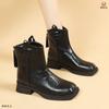 Женские ботильоны в стиле ретро, корейские короткие ботинки, зима 2024, новые квадратные носки из крокодиловой кожи, удобные водонепроницаемые модные уличные ботинки