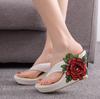 Летняя обувь для женщин 2024 года, модные босоножки на танкетке и платформе, женские уличные шлепанцы с вышитыми цветами, увеличивающие рост