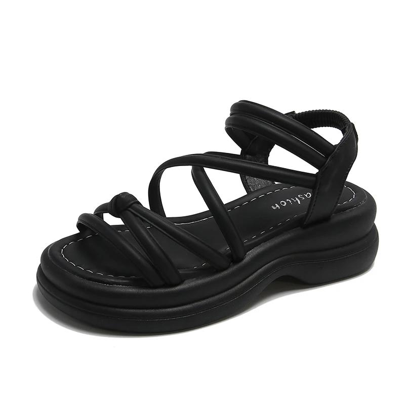 Модные римские сандалии для женщин 2024 года, летняя новая мягкая подошва, верхняя женская обувь на танкетке, модная повседневная дизайнерская обувь для женщин