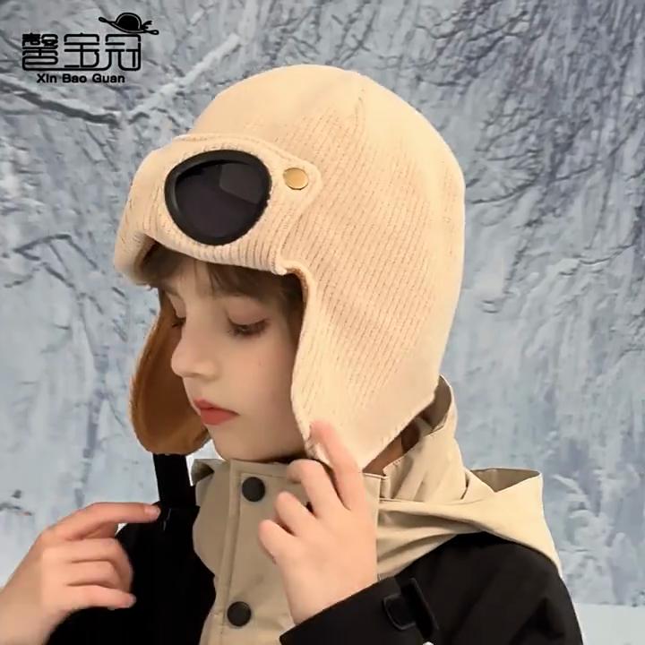 Детская зимняя шапка с очками, флисовая подкладка, детская шапка-чепчик с ушами, теплая детская шапка для катания на лыжах и отдыха на природе для девочек и мальчиков