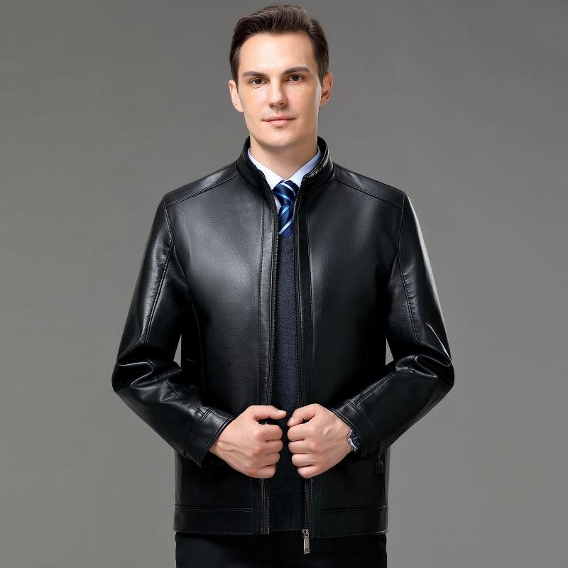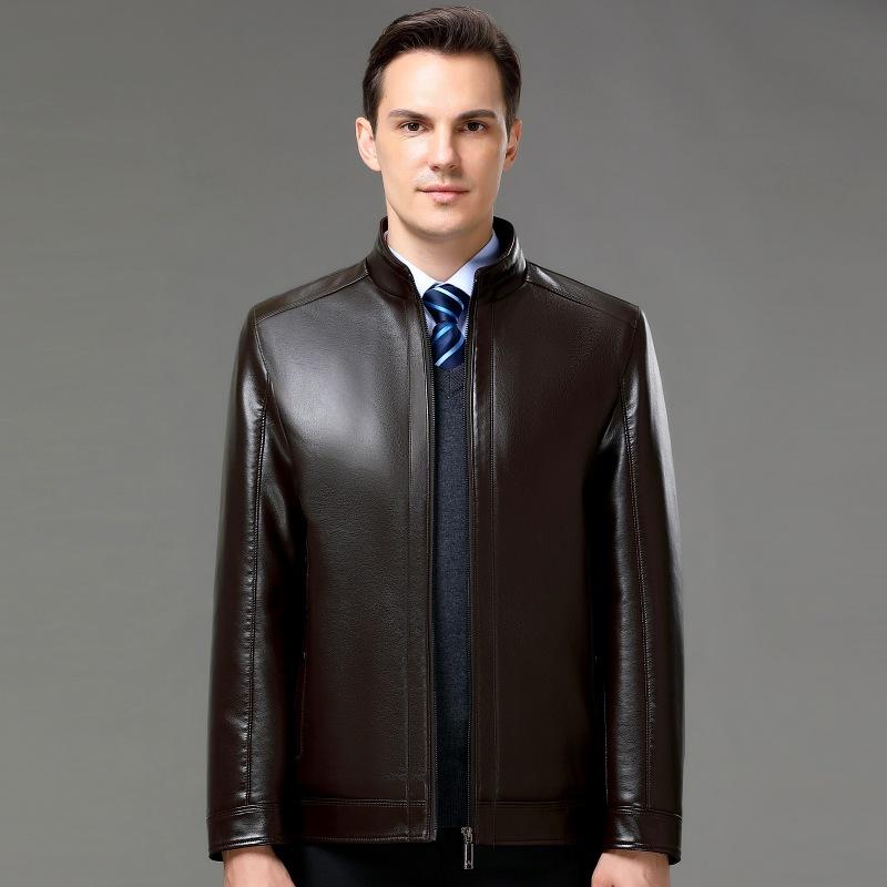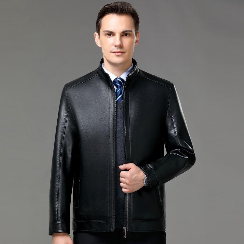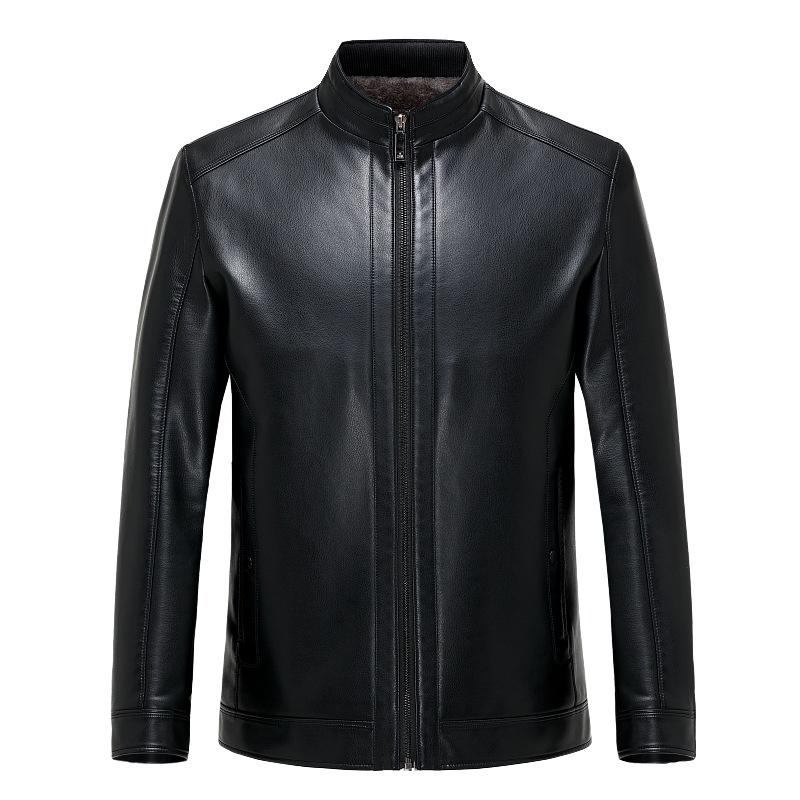Куртка из натуральной кожи для мужчин среднего и пожилого возраста, куртка из овчины с воротником-стойкой и утолщенным бархатом для мужчин